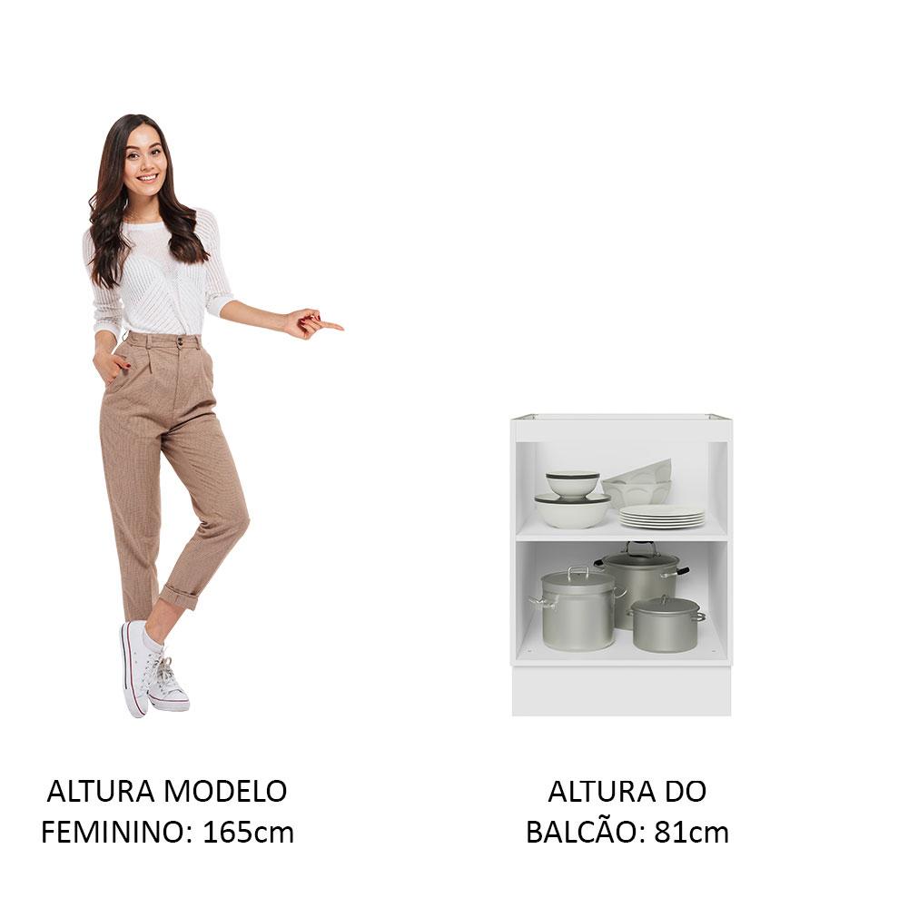 Balcão Madesa Lux 60 cm 1 Porta (Sem Tampo) - Branco/Branco Veludo