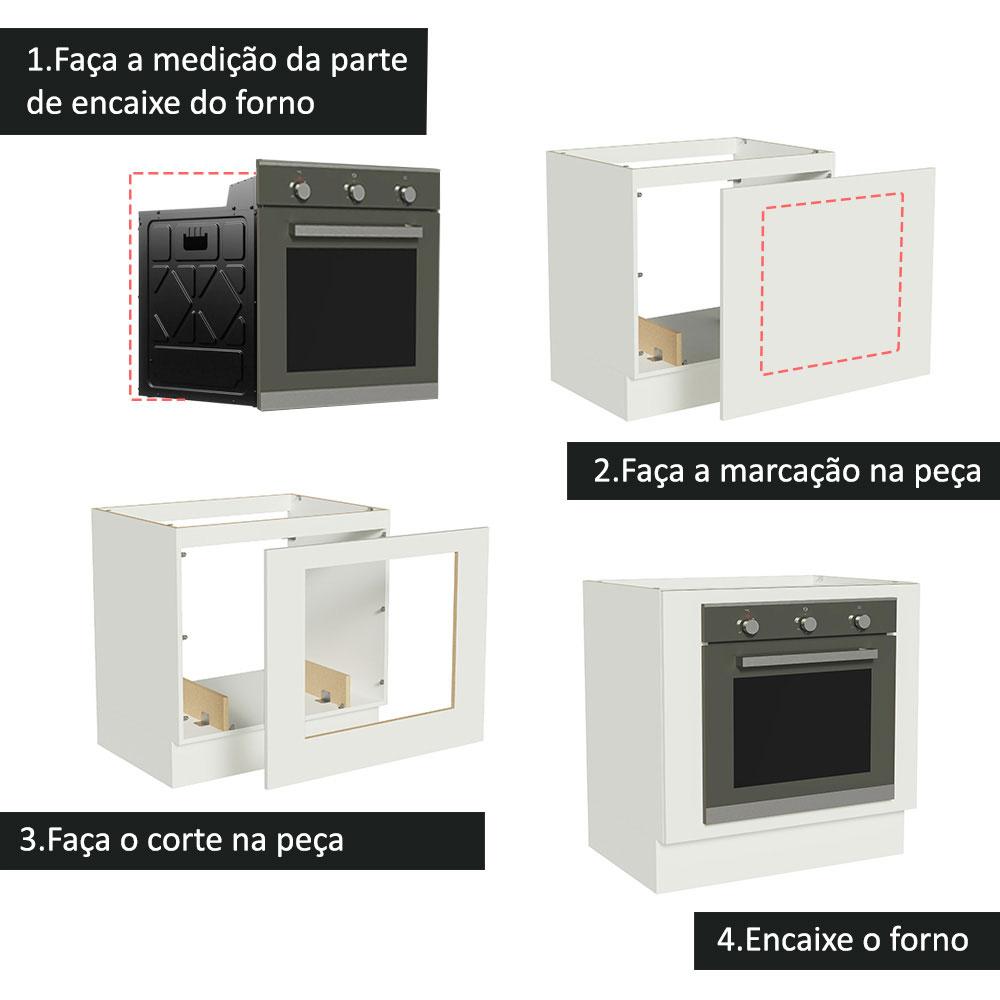 Balcão para Forno de Embutir 80 x 60 cm Sem Tampo Branco Agata, Glamy, Stella Madesa