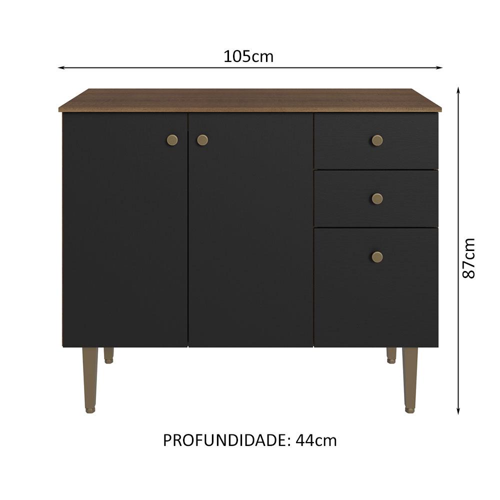 Balcão Gabinete 3 Portas 2 Gavetas Rustic/Preto Gourmet Madesa