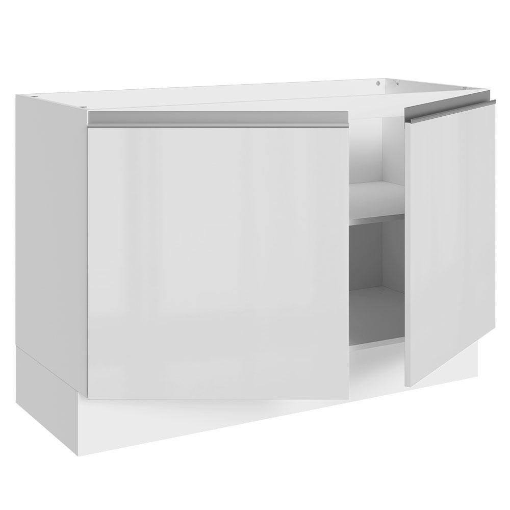 Balcão Gabinete de Pia Armário de Cozinha 100% MDF 120 cm 2 Portas (Sem Tampo e Pia) Portas Branco Brilho Acordes Madesa