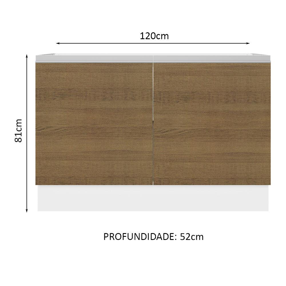 Balcão Gabinete de Pia Armário de Cozinha 100% MDF 120 cm 2 Portas Branco/Rustic Acordes Madesa