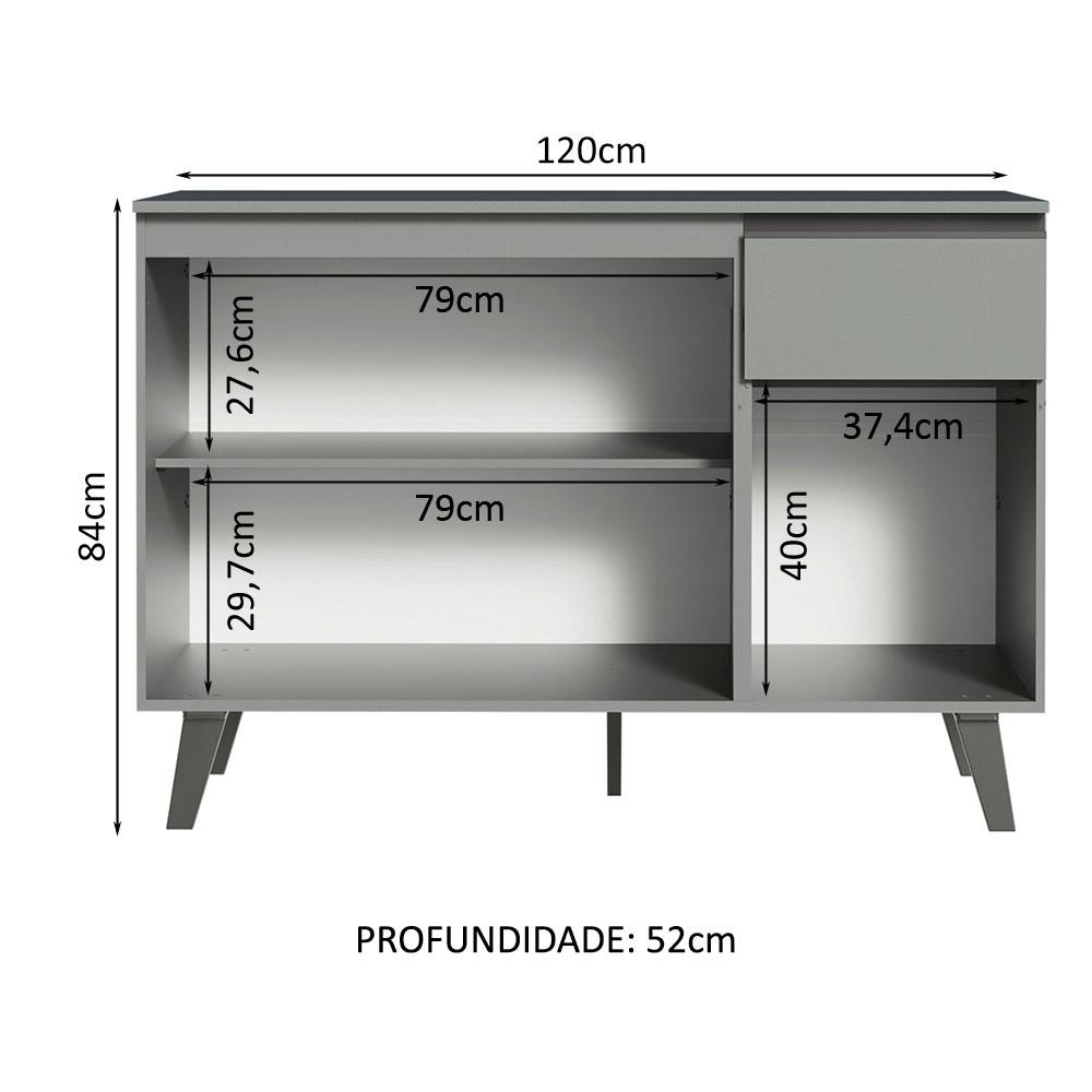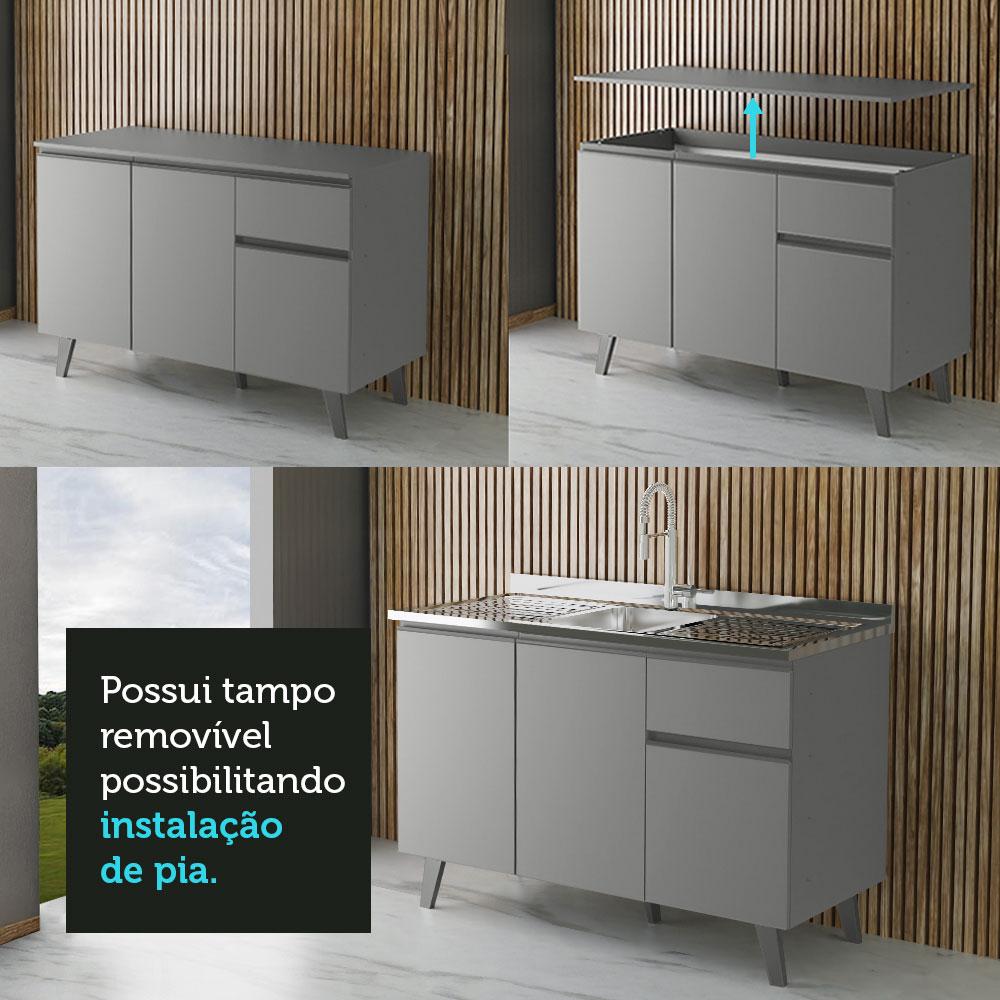 Balcão Armário de Cozinha 3 Portas 1 Gaveta Com Pés Cinza Nice Madesa