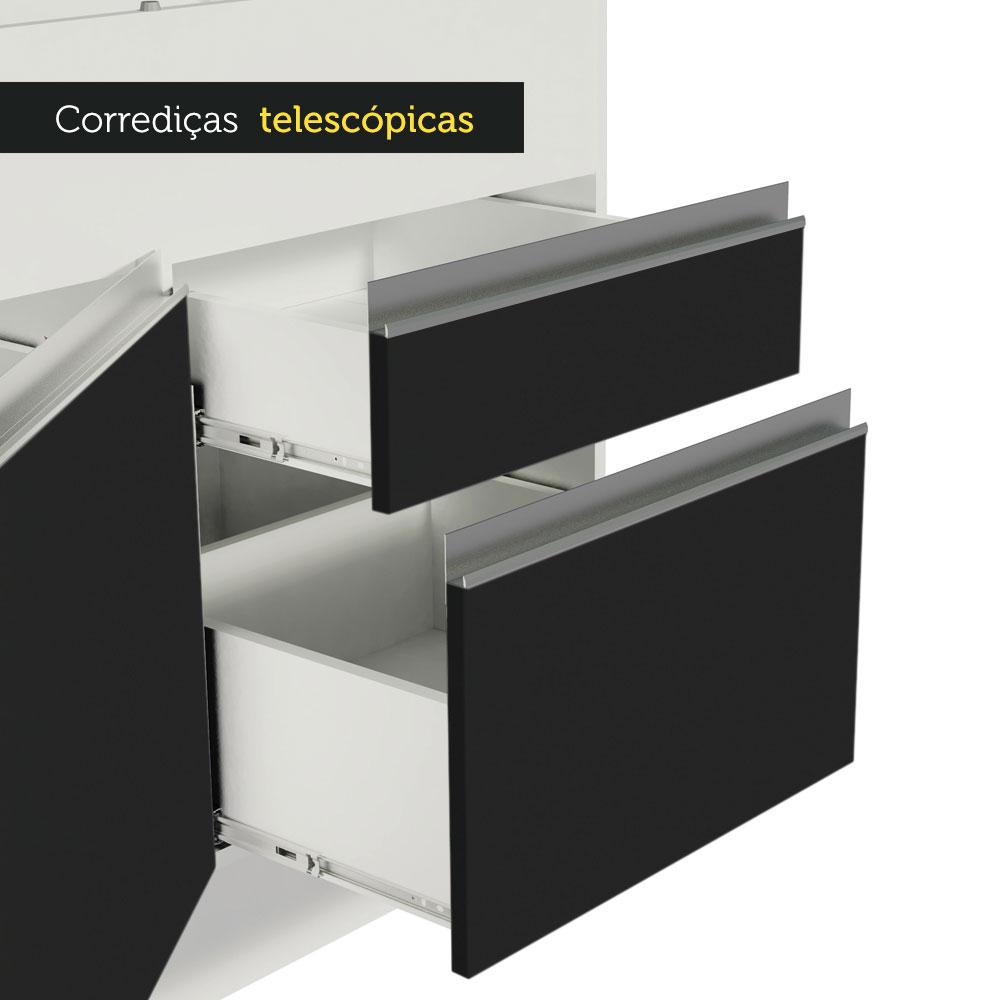 Balcão de Pia Armário de Cozinha 150 cm 2 Portas e 2 Gavetas (Sem Tampo e Pia) Branco/Preto Glamy Madesa
