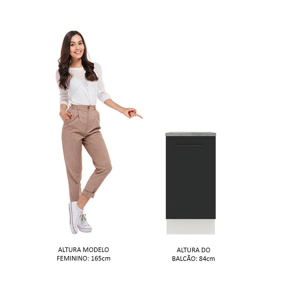 Balcão Armário de Cozinha 40 cm 1 Porta Branco/Preto Agata Madesa