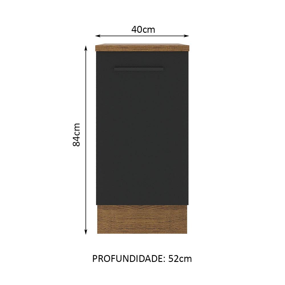 Balcão Armário de Cozinha 40 cm 1 Porta Rustic/Preto Agata Madesa