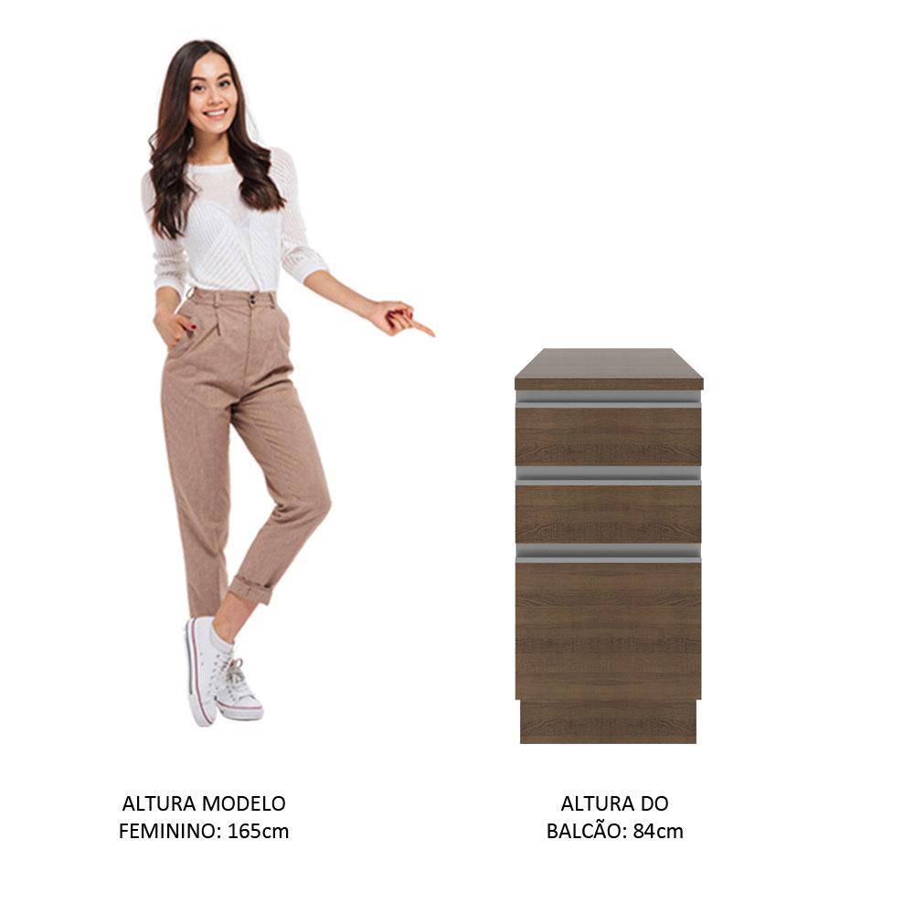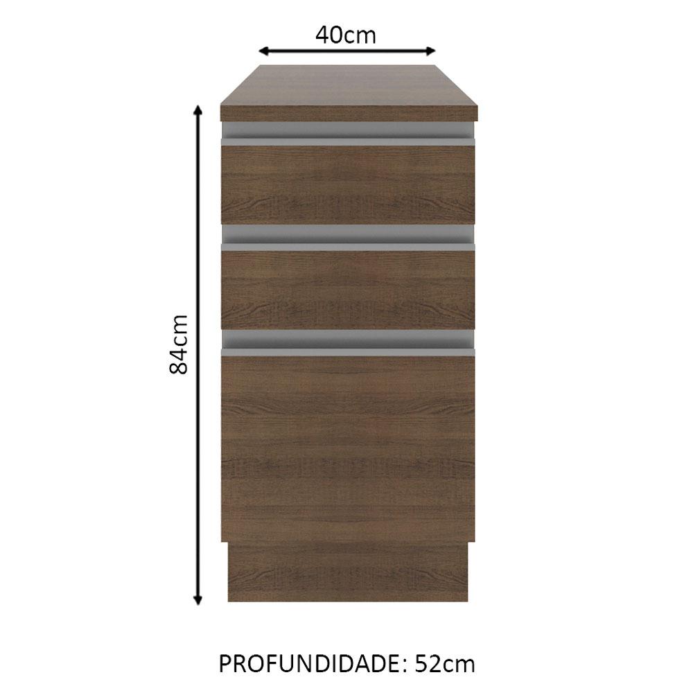 Balcão Armário de Cozinha 40 cm 3 Gavetas Rustic Glamy Madesa