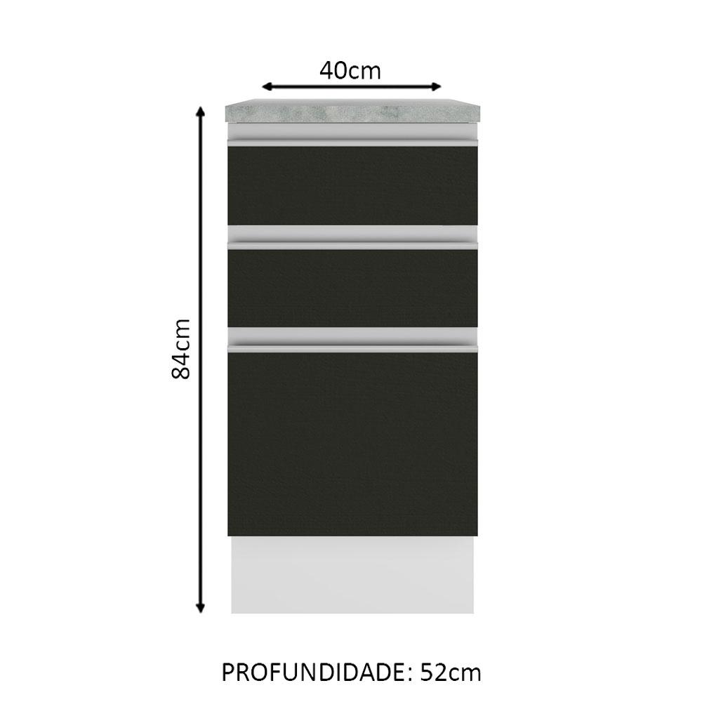 Balcão Armário de Cozinha 40 cm 3 Gavetas Branco/Preto Glamy Madesa