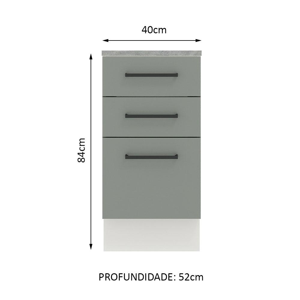 Balcão Madesa Agata 40 cm 3 Gavetas - Branco/Cinza