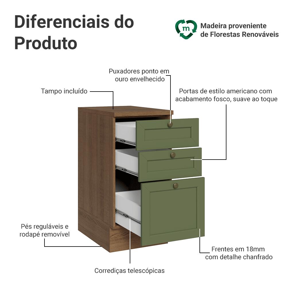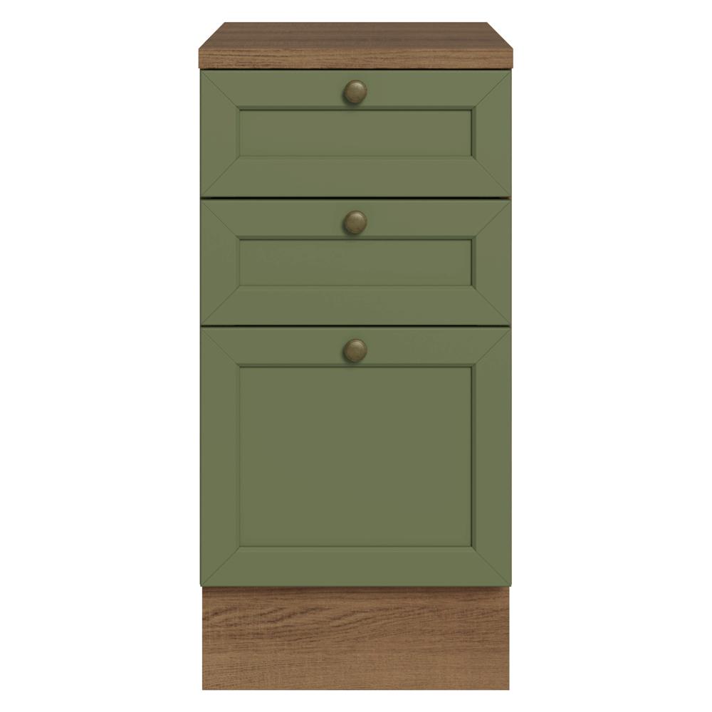 Balcão de Cozinha 40 cm 3 Gavetas Rustic/Verde Vik Madesa