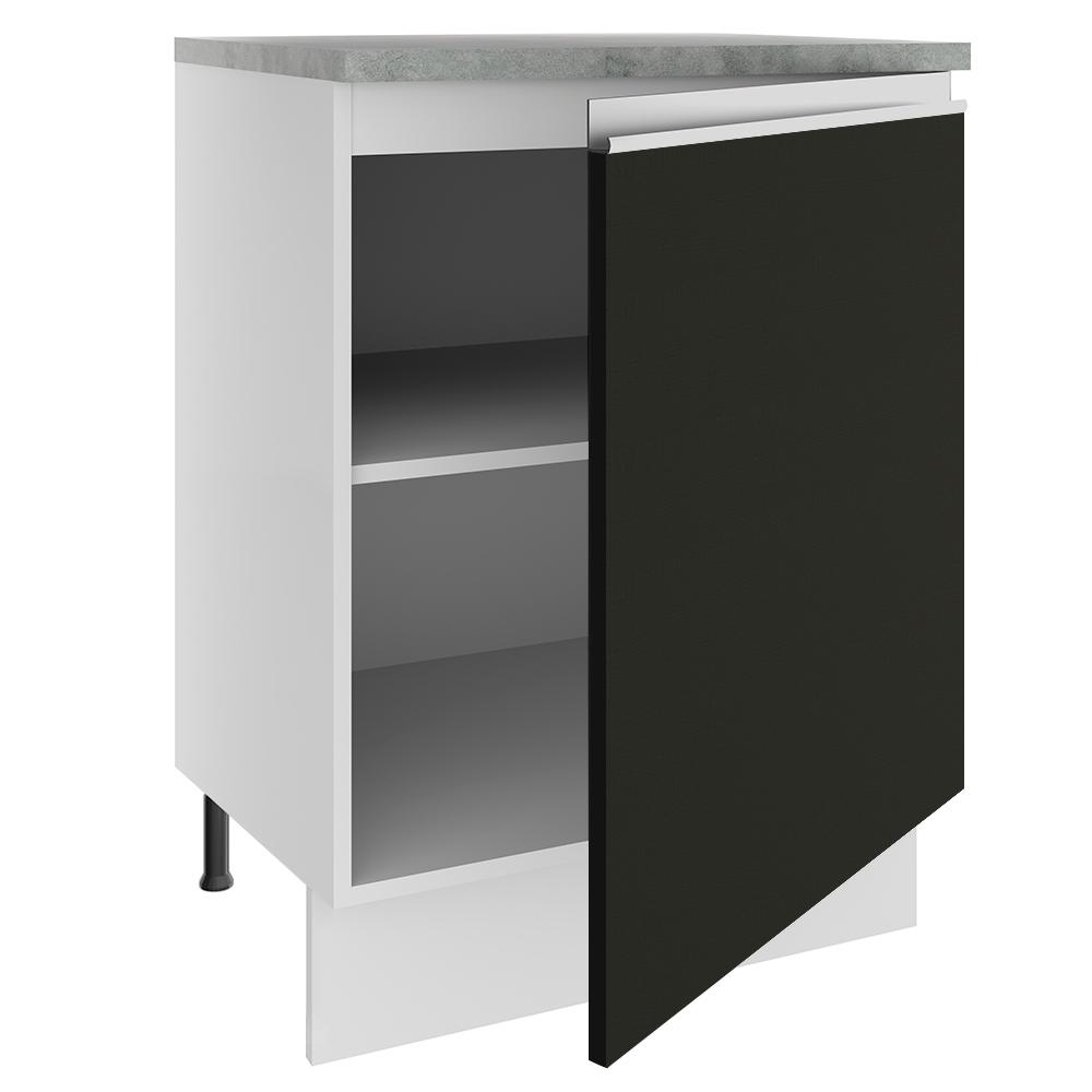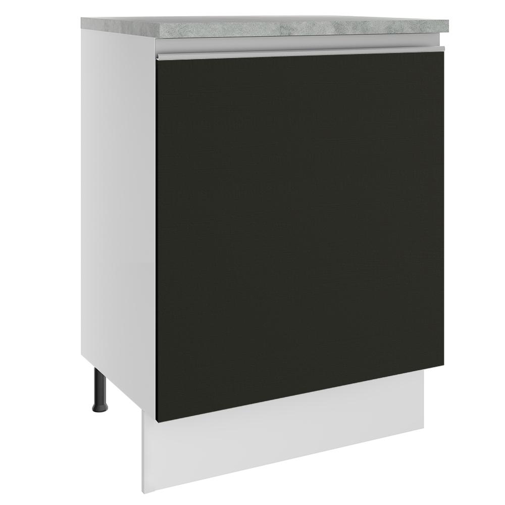 Balcão Armário de Cozinha 60 cm 1 Porta Branco/Preto Glamy Madesa