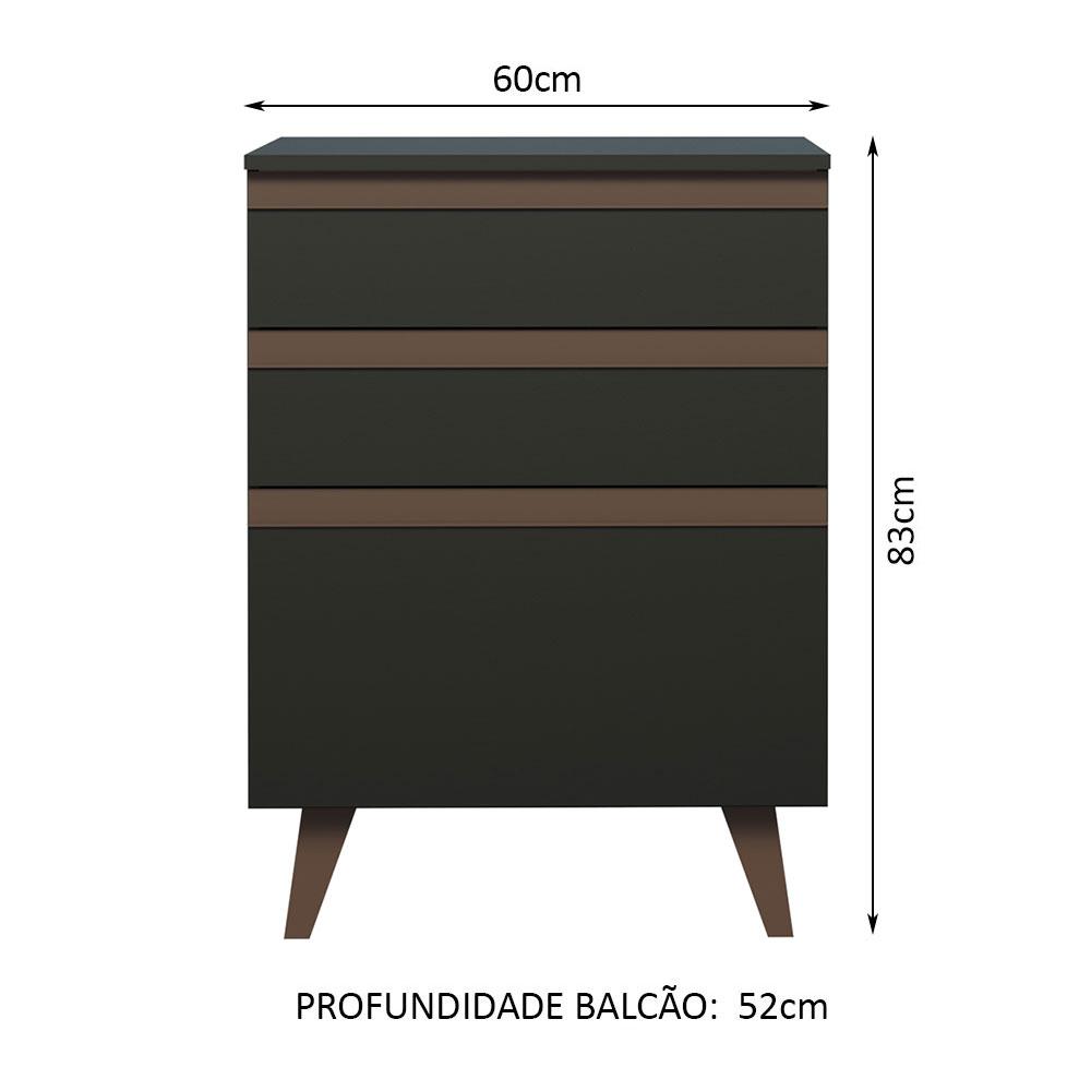 Balcão Armário de Cozinha 60 cm 3 Gavetas Preto Reims Madesa