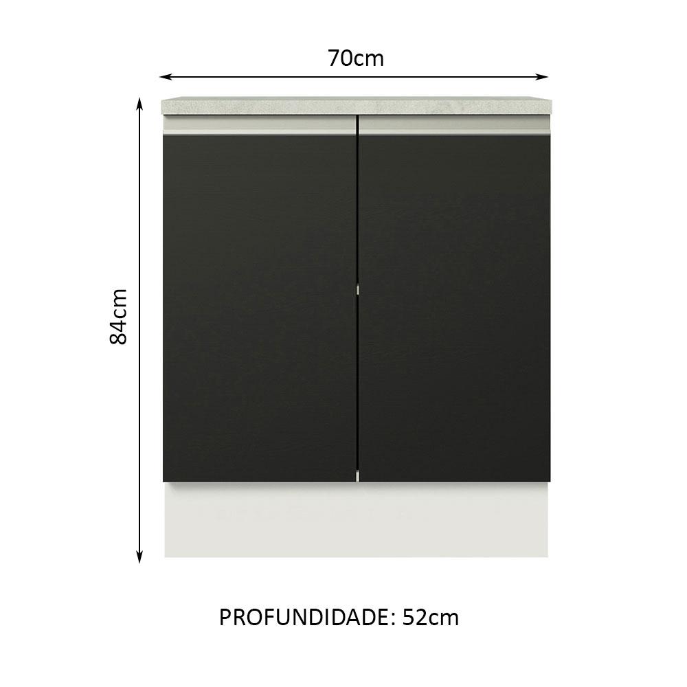 Balcão Armário de Cozinha 70 cm 2 Portas Branco/Preto Glamy Madesa