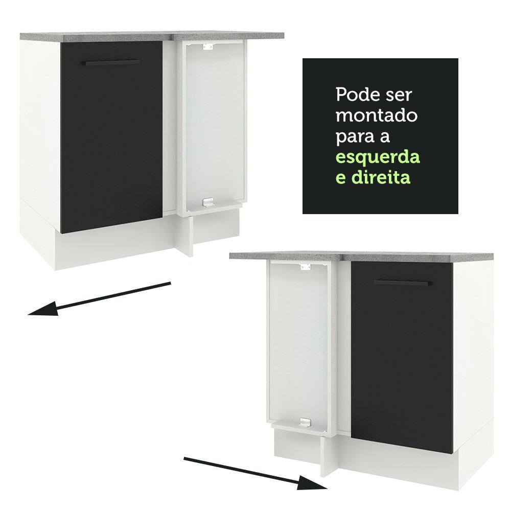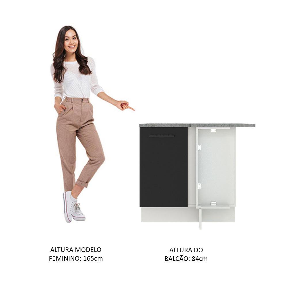 Balcão Armário de Cozinha de Canto 1 Porta Branco/Preto Agata Madesa