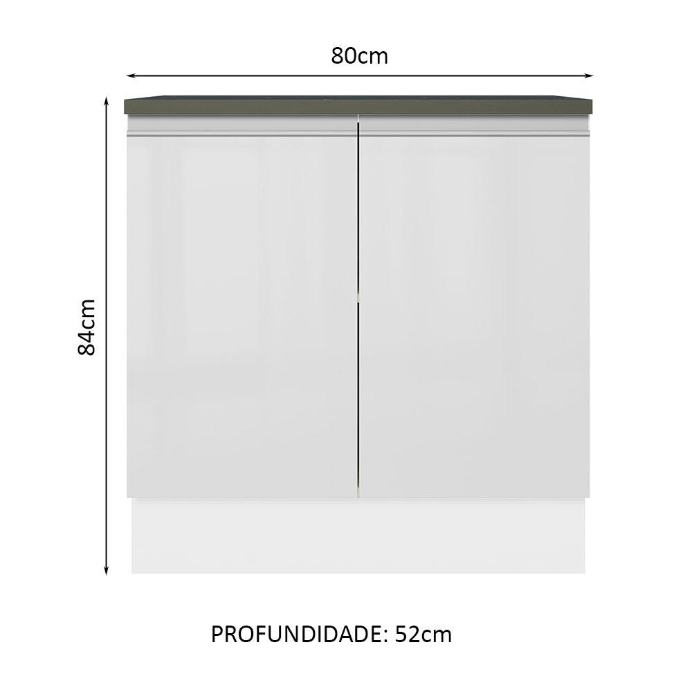 Balcão Armário de Cozinha 100% MDF 80 cm 2 Portas Branco Brilhante Acordes Madesa
