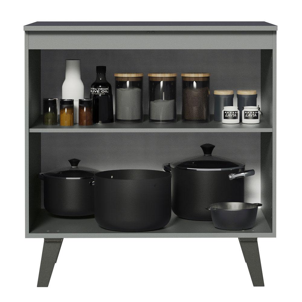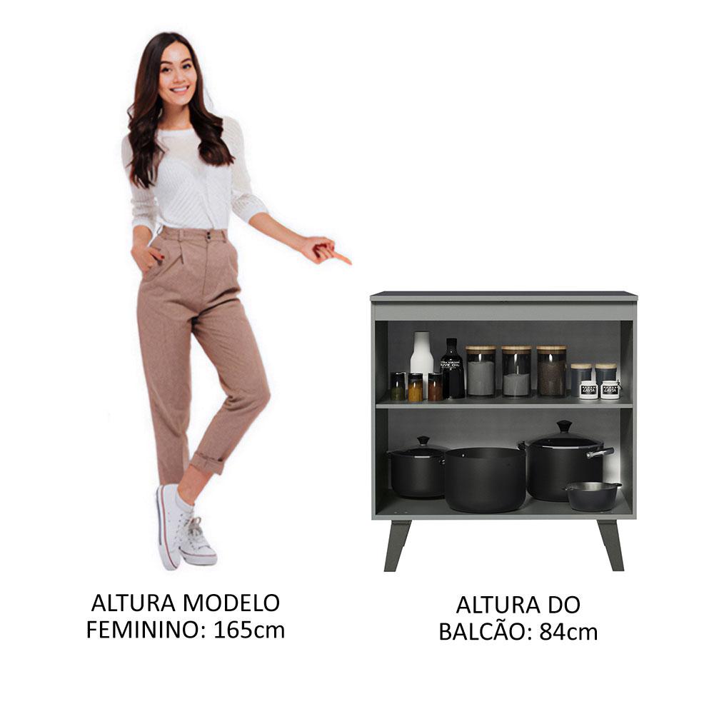 Balcão Armário de Cozinha 80 cm 2 Portas Com Pés Cinza Nice Madesa