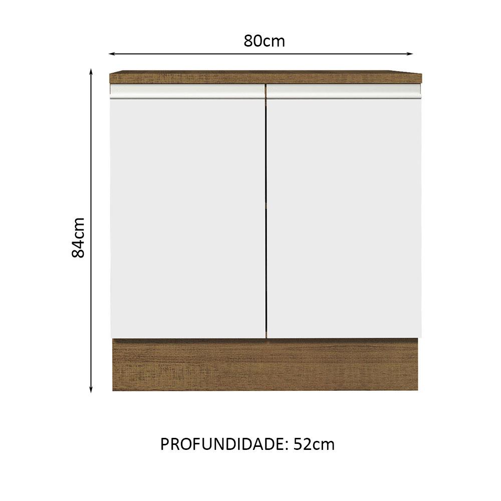 Balcão Armário de Cozinha 80 cm 2 Portas Rustic/Branco Glamy Madesa