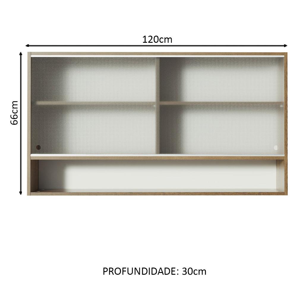 Armário de Cozinha Aéreo 2 Portas de Correr de Vidro e 1 Nicho Rustic Glamy Madesa