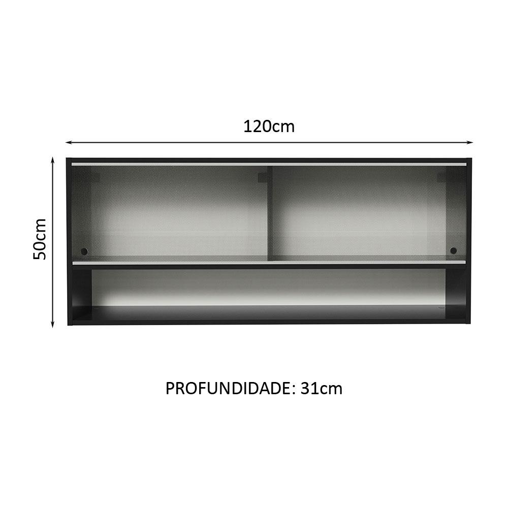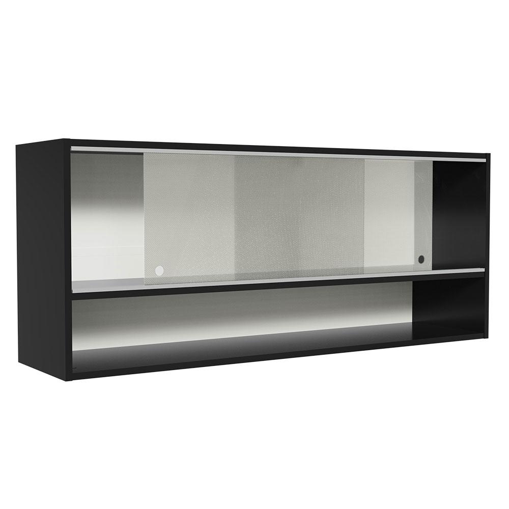 Armário de Cozinha Aéreo 120cm 2 Portas Correr Vidro Pontilhado 1 Nicho Preto Reims Madesa