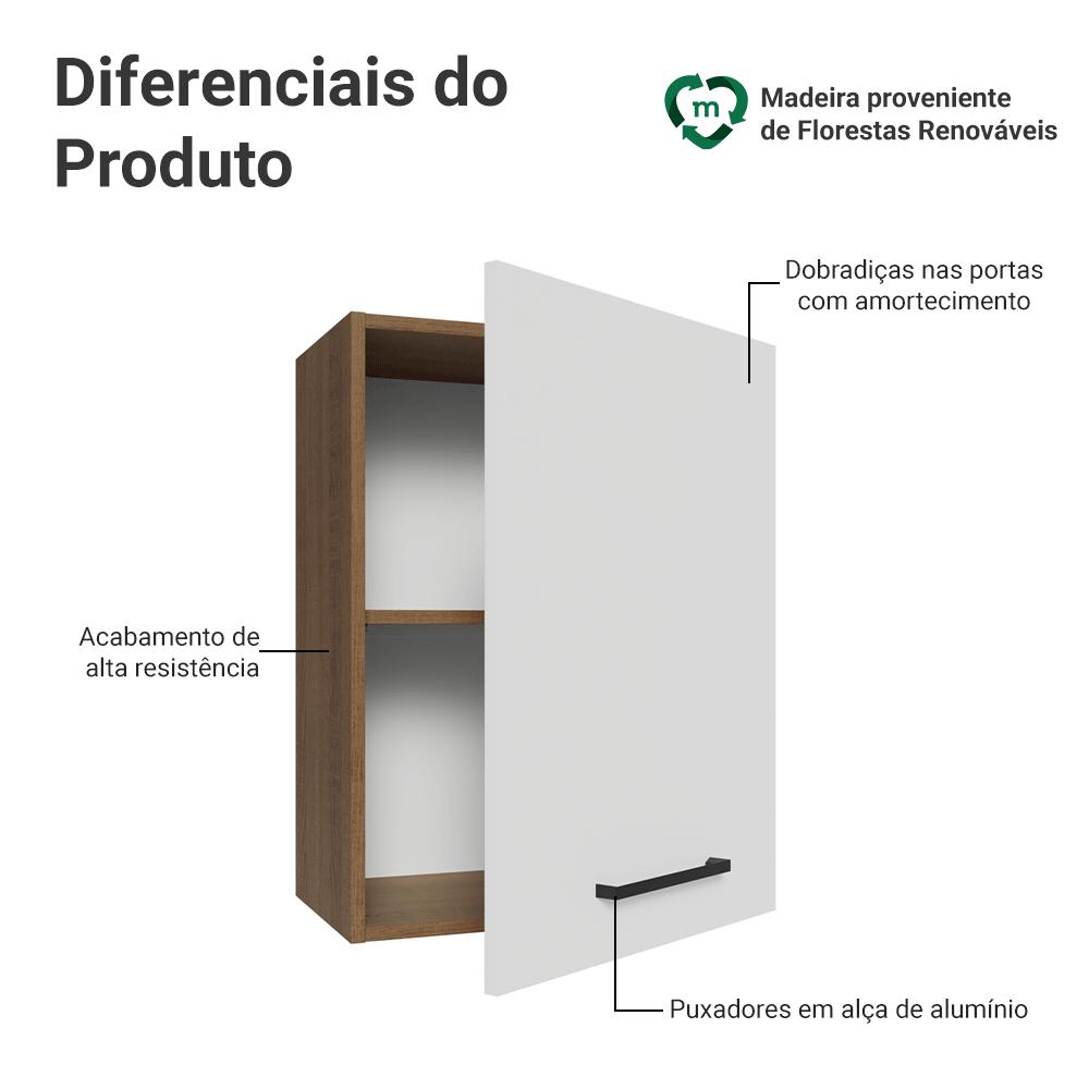 Armário Aéreo 50cm 1 Porta Rustic/Branco Agata Madesa