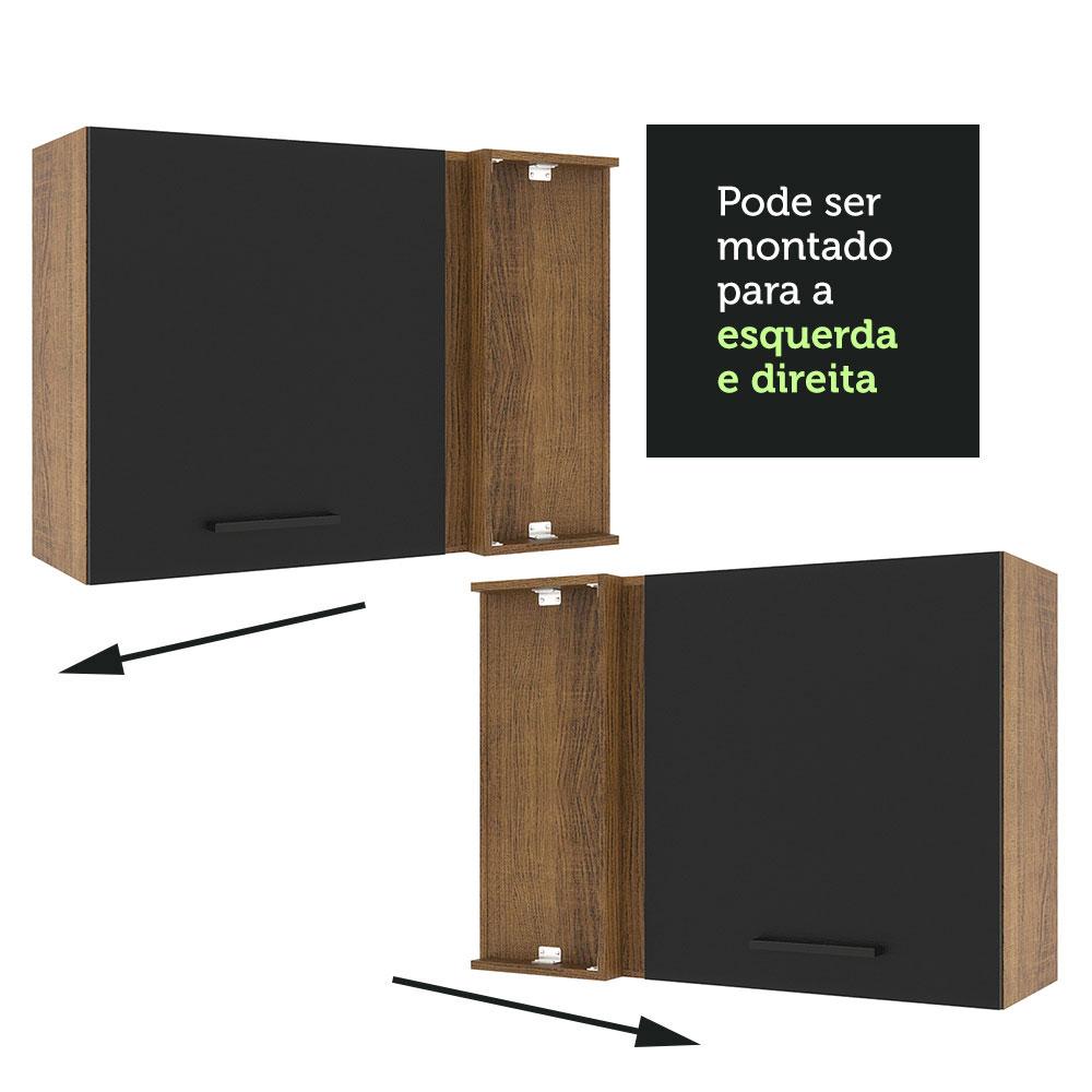 Armário de Cozinha Aéreo de Canto 1 Porta Rustic/Preto Agata Madesa