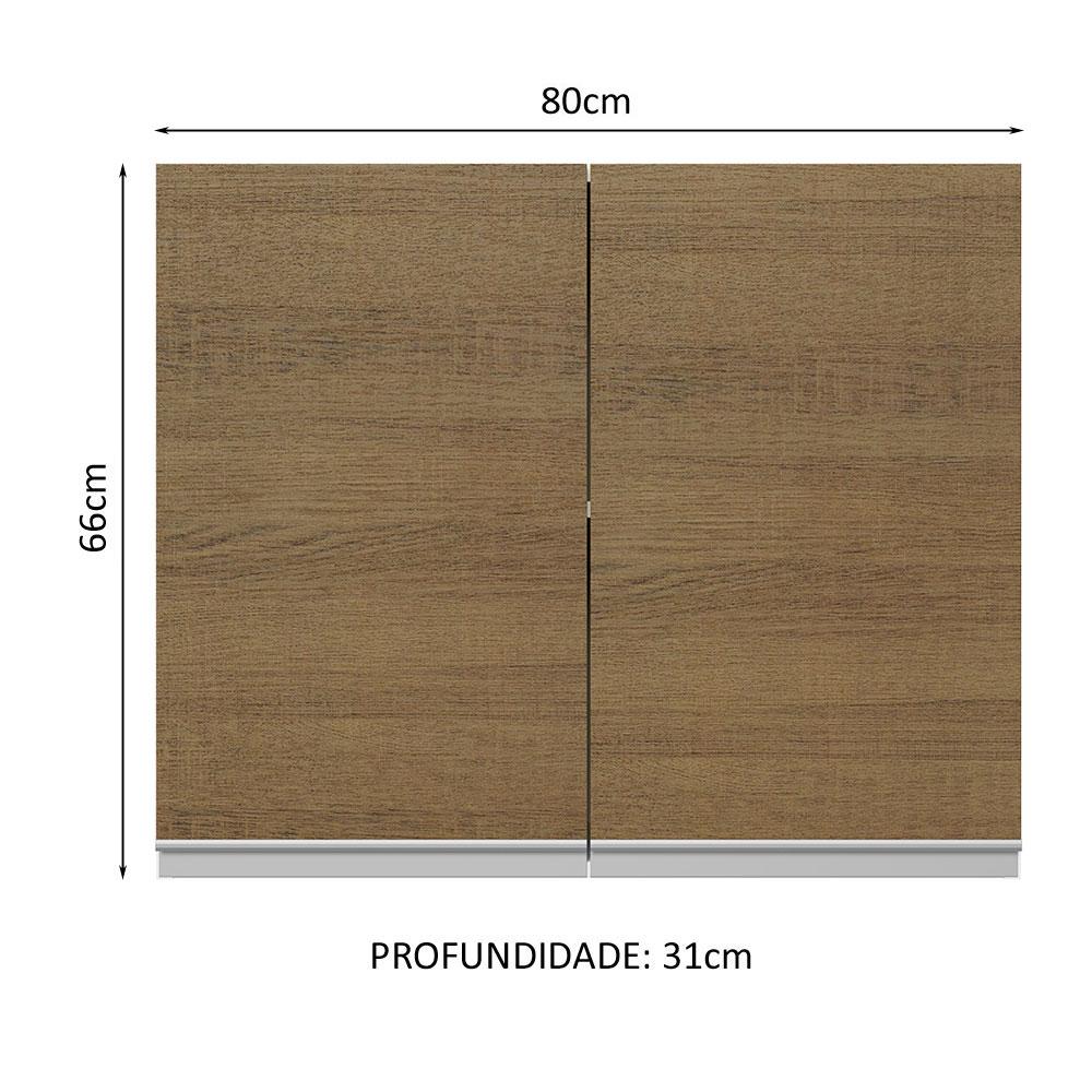 Armário De Cozinha Aéreo 100% MDF 80 cm 2 Portas Branco/Rustic Acordes Madesa