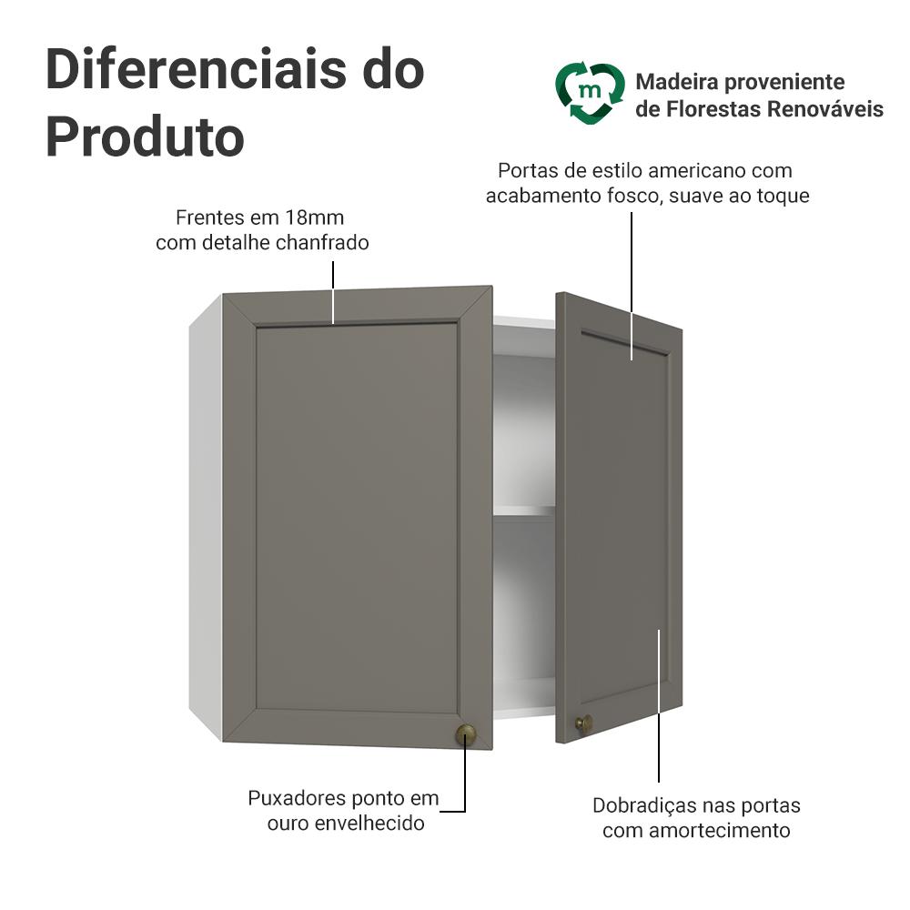 Armário Aéreo 80 cm 2 Portas Branco/Cinza Vik Madesa