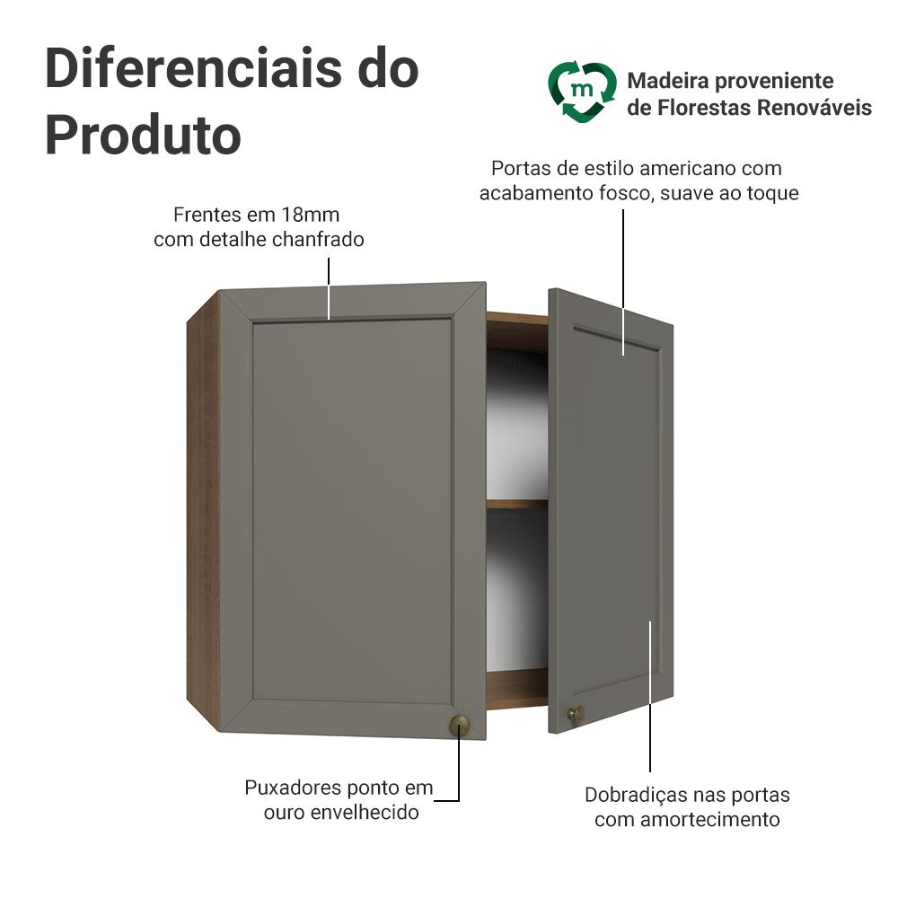 Armário Aéreo 80 cm 2 Portas Rustic/Cinza Vik Madesa