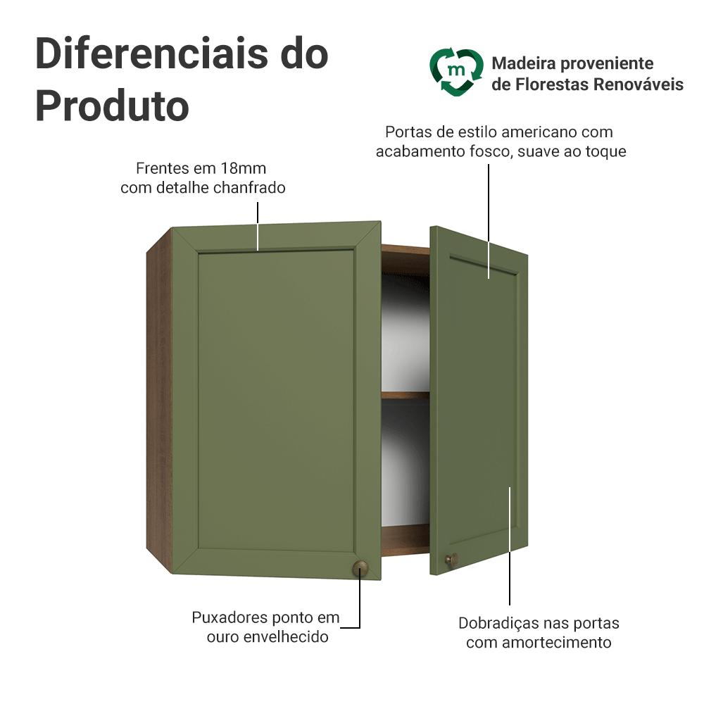 Armário Aéreo 80 cm 2 Portas Rustic/Verde Vik Madesa