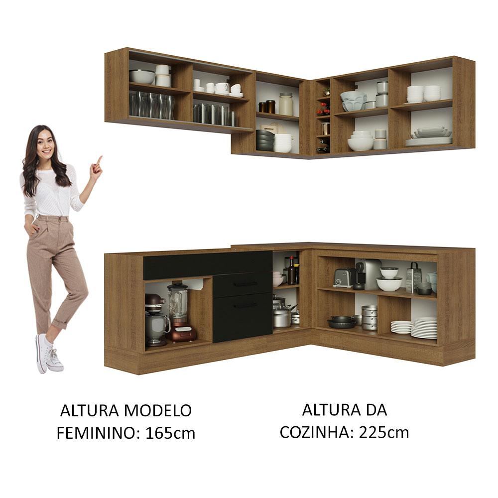 Cozinha Completa de Canto Madesa Agata 389001 com Armário e Balcão (Sem Tampo e Pia) - Rustic/Preto