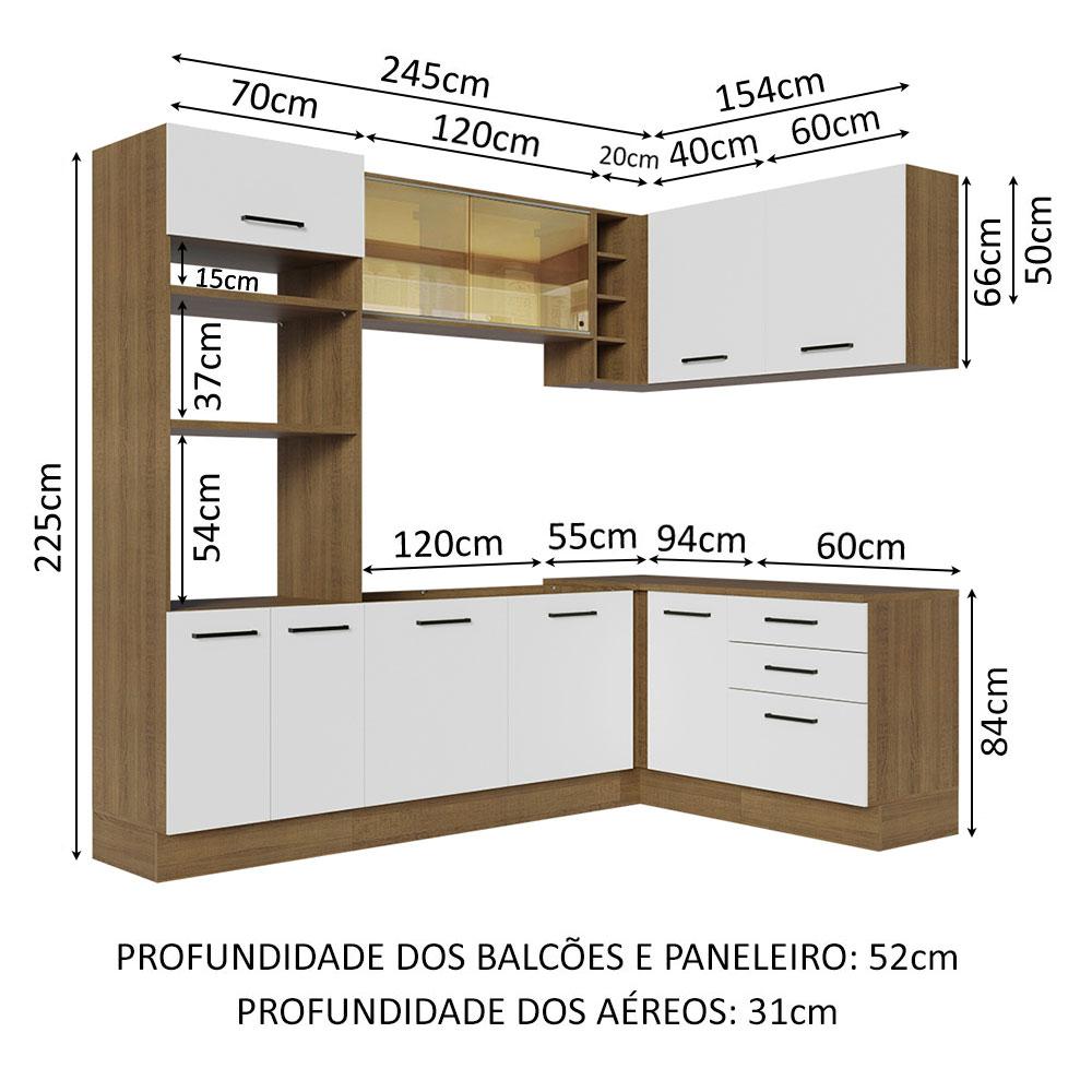 Cozinha Completa de Canto Madesa Agata 399001 com Armário e Balcão (Sem Tampo e Pia) - Rustic/Branco