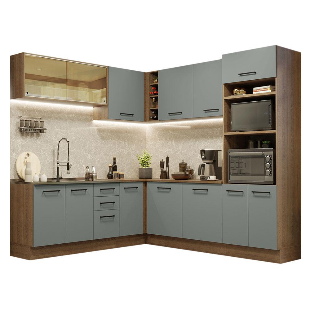 Este modelo de Cozinha Completa de Canto da linha Agata da Madesa se destaca pelo conforto, espaço de sobra e acabamento de alta qualidade.É composta por peças de padrão superior, como puxadores slim em alumínio, corrediças telescópicas nas gavetas e amortecedores para o fechamento suave das portas. Além disso, conta com pistão a gás na porta basculante.Um grande diferencial é que a cozinha é totalmente modulada, o que permite organizar os armários e balcões conforme a necessidade do seu ambiente. O canto ainda pode ser montado tanto para o lado esquerdo quanto para o direito.Para otimizar ainda mais o espaço, a cozinha possui torre quente, que conta com espaço para forno e micro-ondas e permite a instalação de forno embutido. Além disso, os dois balcões maiores possibilitam a colocação de pias de inox ou pedra, no tamanho de 120 cm x 52 cm.Para completar, a cozinha conta com pés reguláveis em PVC e rodapé removível em MDP de fácil encaixe, para retirar na hora de realizar a limpeza.O acabamento da estrutura é no padrão amadeirado Rustic e o das portas e frentes é cinza. É feito em Pintura Poliéster com 7 camadas que protegem o móvel dos efeitos do álcool da água e do calor.Medidas totais:- 225 cm de altura- 459 cm de largura- 52 cm nos módulos inferiores e 31 cm nos aéreosItens inclusos:- Um (1) Aéreo de 120 cm com duas (2) portas de correr com detalhe em vidro reflex- Um (1) Balcão de 120 cm com duas (2) portas e três (3) gavetas (Não acompanha tampo para este balcão.)- Um (1) Aéreo de Canto com uma (1) porta- Um (1) Balcão de Canto com uma (1) porta- Uma (1) Adega com quatro (4) nichos- Um (1) Aéreo de 120 cm com duas (2) portas- Um (1) Balcão de 120 cm com duas (2) portas e tampo- Uma (1) Torre Quente com três (3) portas, dois (2) nichos para fornos e um (1) nicho menor- Um (1) Organizador de talheres para gavetaCódigo do produto: GCAG459001F9Obs.:- Imagens meramente ilustrativas, os eletros, o tampo da pia, a torneira e a decoração não acompanham o produto- Os módulos de canto podem ser montados para o lado direito ou esquerdo- É obrigatório fixar a torre na parede- A Madesa não disponibiliza serviço de montagem- O produto segue com manual e todas as ferragens necessárias para a instalação1 – O produto é novo ou usado?R.: Todos os produtos da Madesa são novos, enviados da nossa fábrica diretamente para as casas de nossos clientes.2 – O produto vem montado? Se não, vocês realizam a montagem?R.: A Madesa não disponibiliza serviço de montagem. Todos os produtos seguem com manual de instalação e as ferragens necessárias. Alguns produtos possuem vídeo explicando o passo a passo da montagem.3 – Vocês possuem loja física? Posso retirar meu produto em mãos?R.: Não possuímos loja física, apenas loja virtual. Confira as opções de envio ao colocar o seu CEP.4 – Qual é o valor do envio? Posso pagar separadamente?R.: O valor do envio é calculado com base no peso e volume do produto, e no CEP de destino. Você pode calcular o valor e prazo de entrega no simulador.A Madesa se dedica à sustentabilidade com várias iniciativas: temos uma usina própria para gerar energia que abastece uma de nossas fábricas. Selecionamos nossos fornecedores, priorizando aqueles que possuem um compromisso com a sustentabilidade e proteção do meio ambiente. Todo o plástico utilizado no setor produtivo é proveniente de reciclagem e as suas sobras são encaminhadas ao fornecedor que os recicla. Também investimos no desenvolvimento contínuo de nossos colaboradores e em ações educacionais que beneficiem a comunidade.