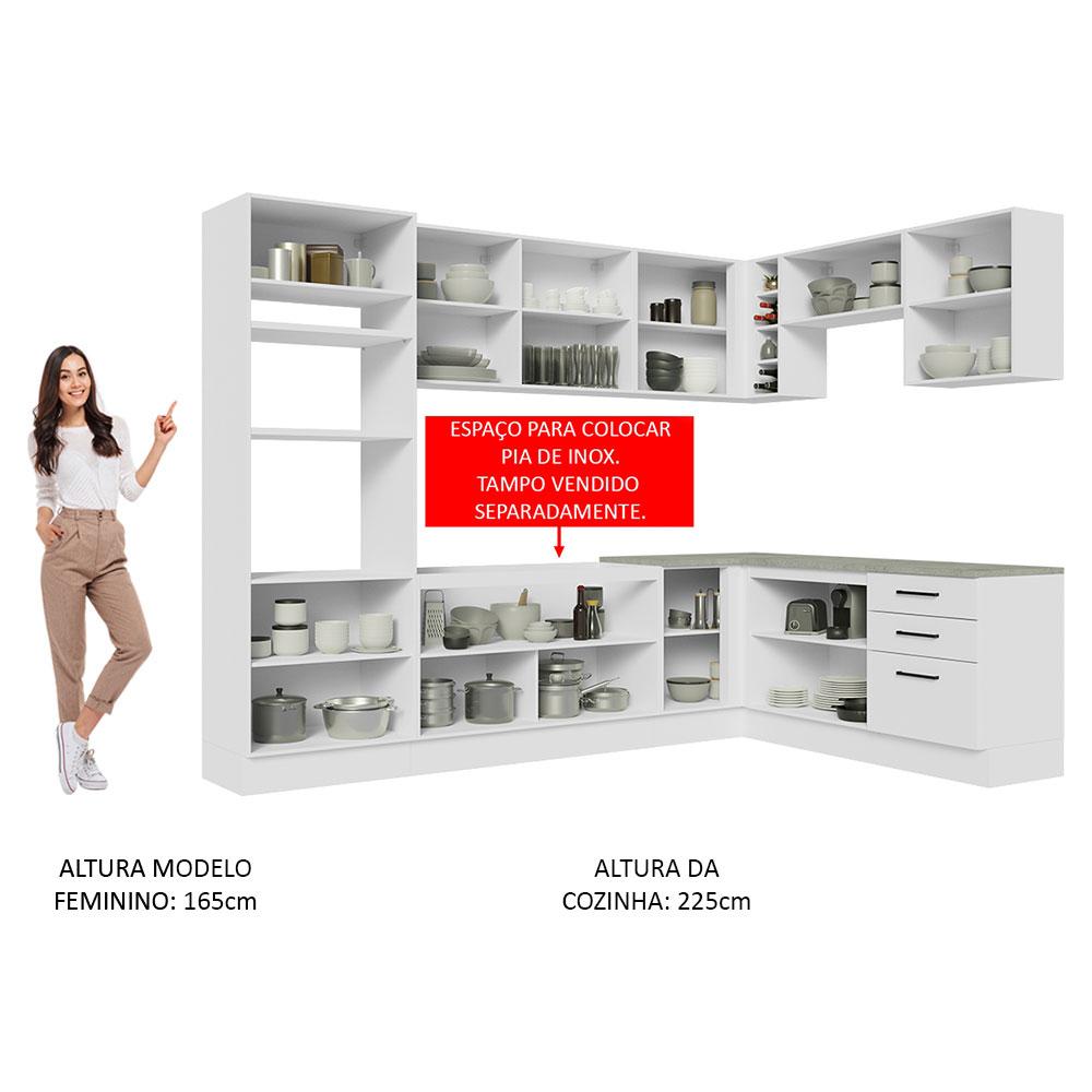 Cozinha Completa de Canto Madesa Agata 479001 com Armário e Balcão (Sem Tampo e Pia) - Branco