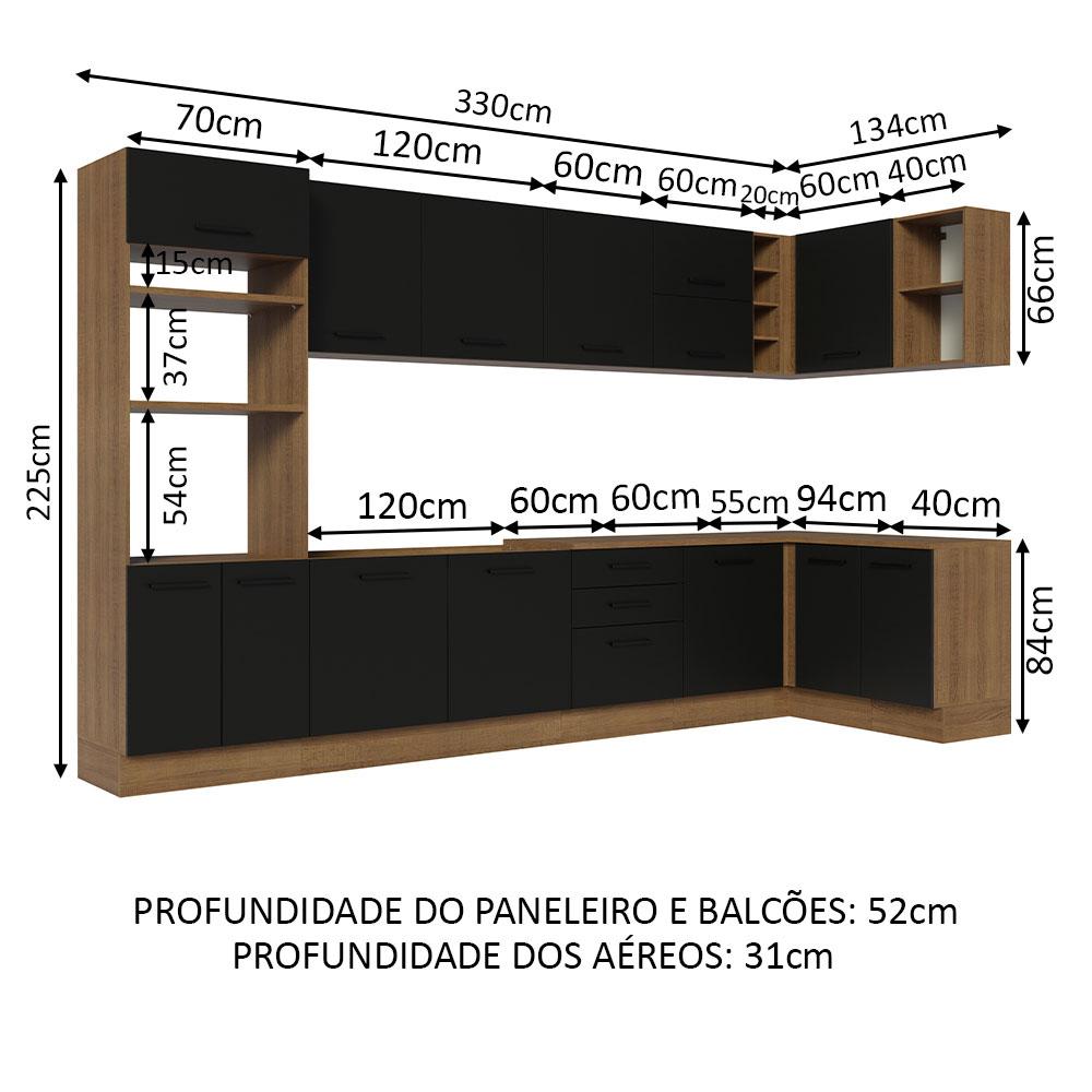 Armário de Cozinha Completa de Canto 499cm Rustic/Preto Agata Madesa 01