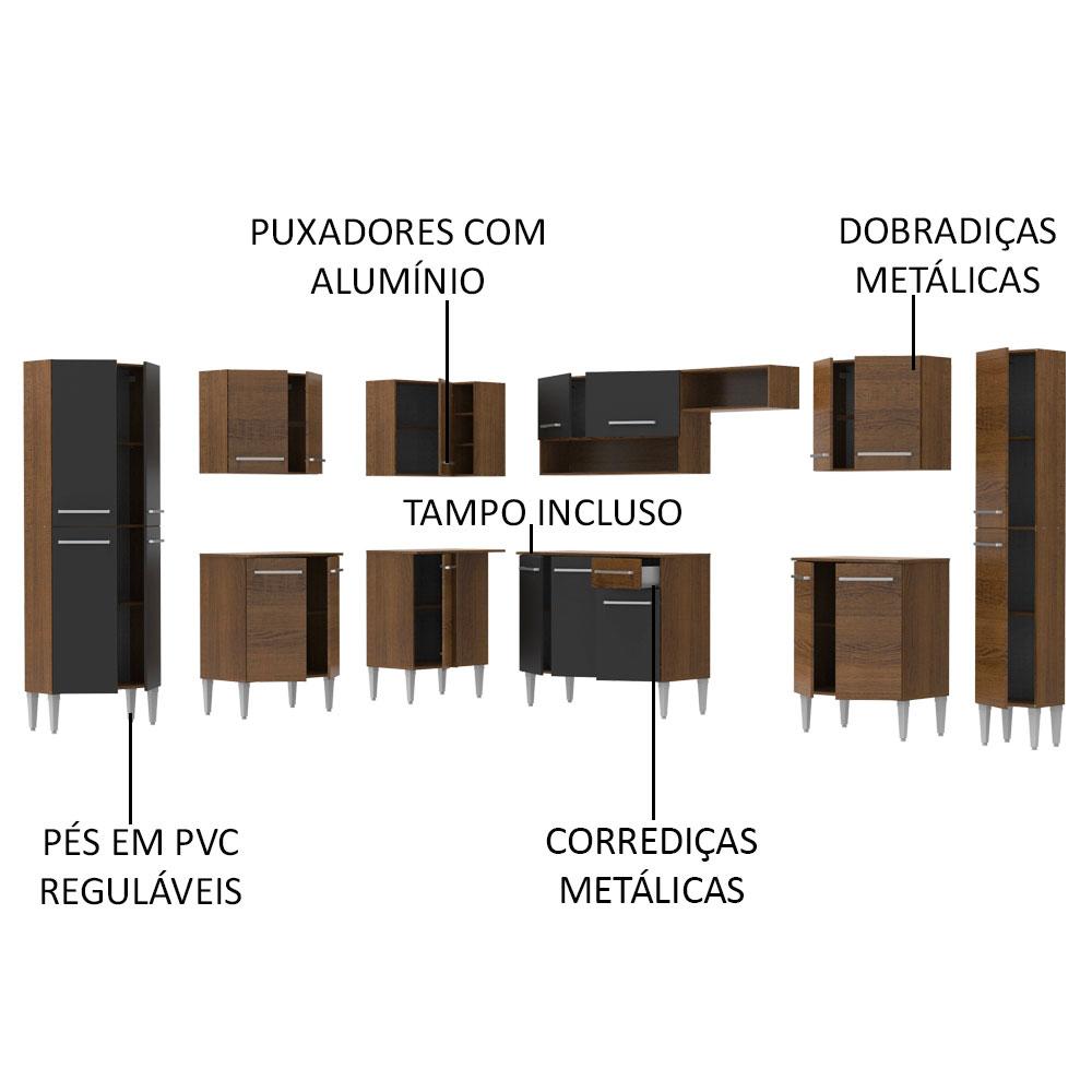 Cozinha Completa de Canto Reto Madesa Emilly Big com Armário e Balcão 21 Portas 1 Gaveta