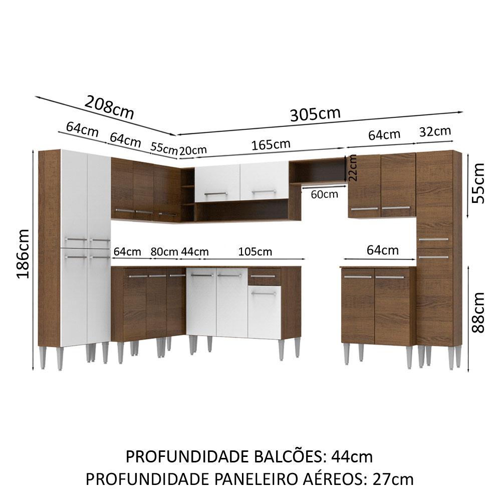 Cozinha Completa de Canto Madesa Emilly Big com Armário e Balcão 21 Portas 1 Gaveta - Rustic/Branco