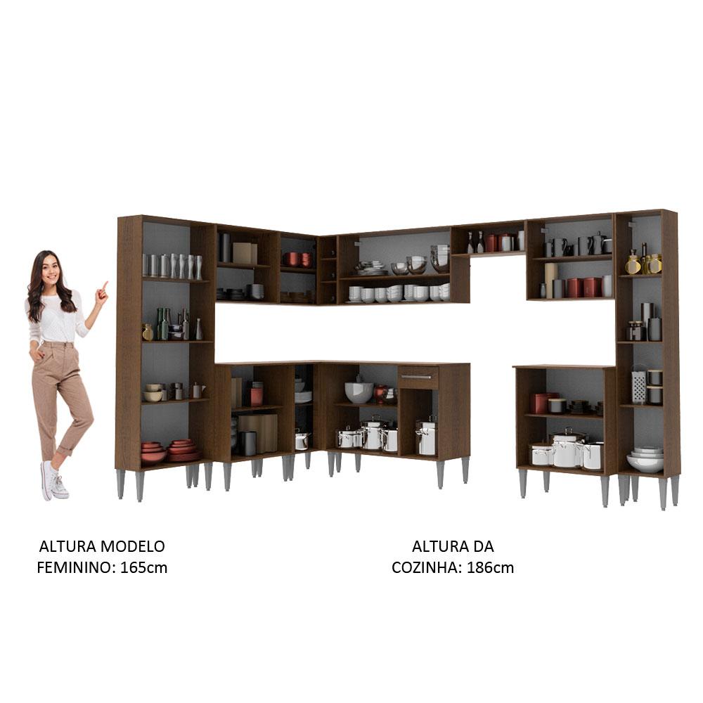 A Cozinha Completa Emilly de Canto Reto é perfeita para o seu dia-a-dia. Tem puxadores com alumínio e corrediças e dobradiças metálicas resistentes. Conta com 21 portas, 1 gaveta e 5 nichos com total aproveitamento dos espaços. Acompanha tampo de madeira de todos os balcões. Os pés são em PVC para facilitar a limpeza e reguláveis para nivelar pequenas imperfeições no piso.O acabamento interno e externo é nas cores amadeirado Rustic e branco, em Pintura Poliéster com 7 camadas de proteção que oferece resistência contra os efeitos da água e do calor. Ela é dividida em dez módulos independentes: paneleiro duplo, balcão com 2 portas, armário aéreo com 2 portas, balcão de canto reto, armário aéreo de canto reto com duas portas e adega, balcão de pia, armário aéreo com duas portas e dois nichos, balcão com 2 portas, armário aéreo com 2 portas e o paneleiro simples.Os armários aéreos precisam ser fixados na parede. Os módulos de canto devem ser instalados conforme mostram as imagens, não sendo possível fazer a inversão do lado da montagem.Medidas totais: 186 cm de altura, 208 cm de largura do lado esquerdo e 305 cm de largura do lado direito, contabilizando o espaço necessário para o canto. São 44 cm profundidade nos balcões inferiores e 27 cm no paneleiro e nos aéreos.Imagens meramente ilustrativas: a decoração e os eletros não acompanham o produto.Itens inclusos:- Um (1) paneleiro duplo com 4 portas- Dois (2) balcões com 2 portas e tampo- Dois (2) armários aéreos com 2 portas- Um (1) balcão de canto reto com 1 porta e tampo- Um (1) armário aéreo de canto reto com 1 porta e adega acoplada- Um (1) balcão de pia com 3 portas, 1 gaveta e tampo- Um (1) armário aéreo com 2 portas e 2 nichos grandes- Um (1) paneleiro simples com 2 portasCódigo do produto: GCEM5130029BObs.: A Madesa não disponibiliza serviço de montagem. O produto segue com manual de instalação e todas as ferragens necessárias para sua montagem.1-O produto é novo ou usado?R.: Todos os produtos da Madesa são novos, enviados da nossa fábrica diretamente para as casas de nossos clientes.2-O produto vem montado? Se não, vocês realizam a montagem?R.: A Madesa não disponibiliza serviço de montagem. Todos os produtos seguem com manual de instalação e as ferragens necessárias. Alguns produtos possuem vídeo explicando o passo a passo da montagem.3-Vocês possuem loja física? Posso retirar meu produto em mãos?R.: Não possuímos loja física, apenas loja virtual. Confira as opções de envio ao colocar o seu CEP.4-Qual é o valor do envio? Posso pagar separadamente?R.: O valor do envio é calculado com base no peso e volume do produto, e no CEP de destino. Você pode calcular o valor e prazo de entrega no simulador.5-A Madesa entrega em todo Brasil? Como é feita a entrega?R.: Sim, entregamos no Brasil inteiro através de transportadoras parceiras.6-O produto acompanha Nota Fiscal?R.: Sim, todos os produtos são entregues com suas respectivas notas fiscais.7-Os produtos possuem garantia?R.: Sim. A Madesa oferece 3 meses de garantia para defeitos de fabricação.A Madesa se dedica à sustentabilidade com várias iniciativas: temos uma usina própria para gerar energia que abastece uma de nossas fábricas. Selecionamos nossos fornecedores, priorizando aqueles que possuem um compromisso com a sustentabilidade e proteção do meio ambiente. Todo o plástico utilizado no setor produtivo é proveniente de reciclagem e as suas sobras são encaminhadas ao fornecedor que os recicla. Também investimos no desenvolvimento contínuo de nossos colaboradores e em ações educacionais que beneficiem a comunidade.