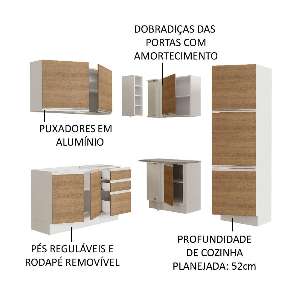 Cozinha Completa de Canto Madesa Glamy 329001 com Armário e Balcão (Sem Tampo e Pia) - Branco/Rustic