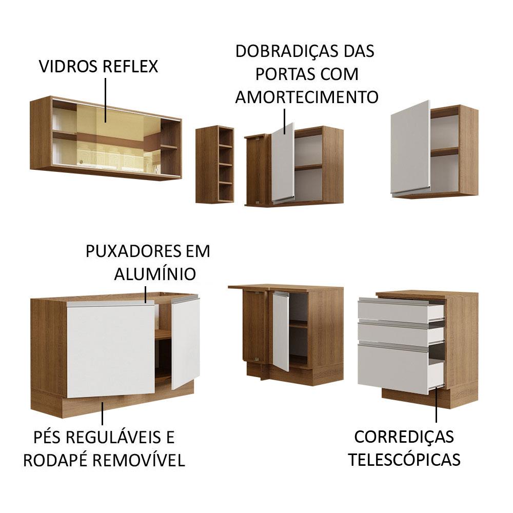 Cozinha Completa de Canto Madesa Glamy 329002 com Armário e Balcão (Sem Tampo e Pia) - Rustic/Branco