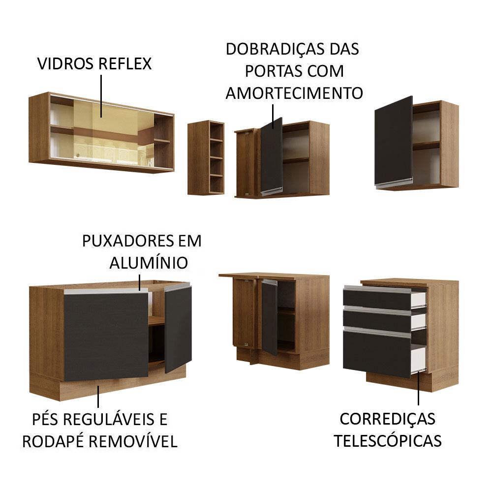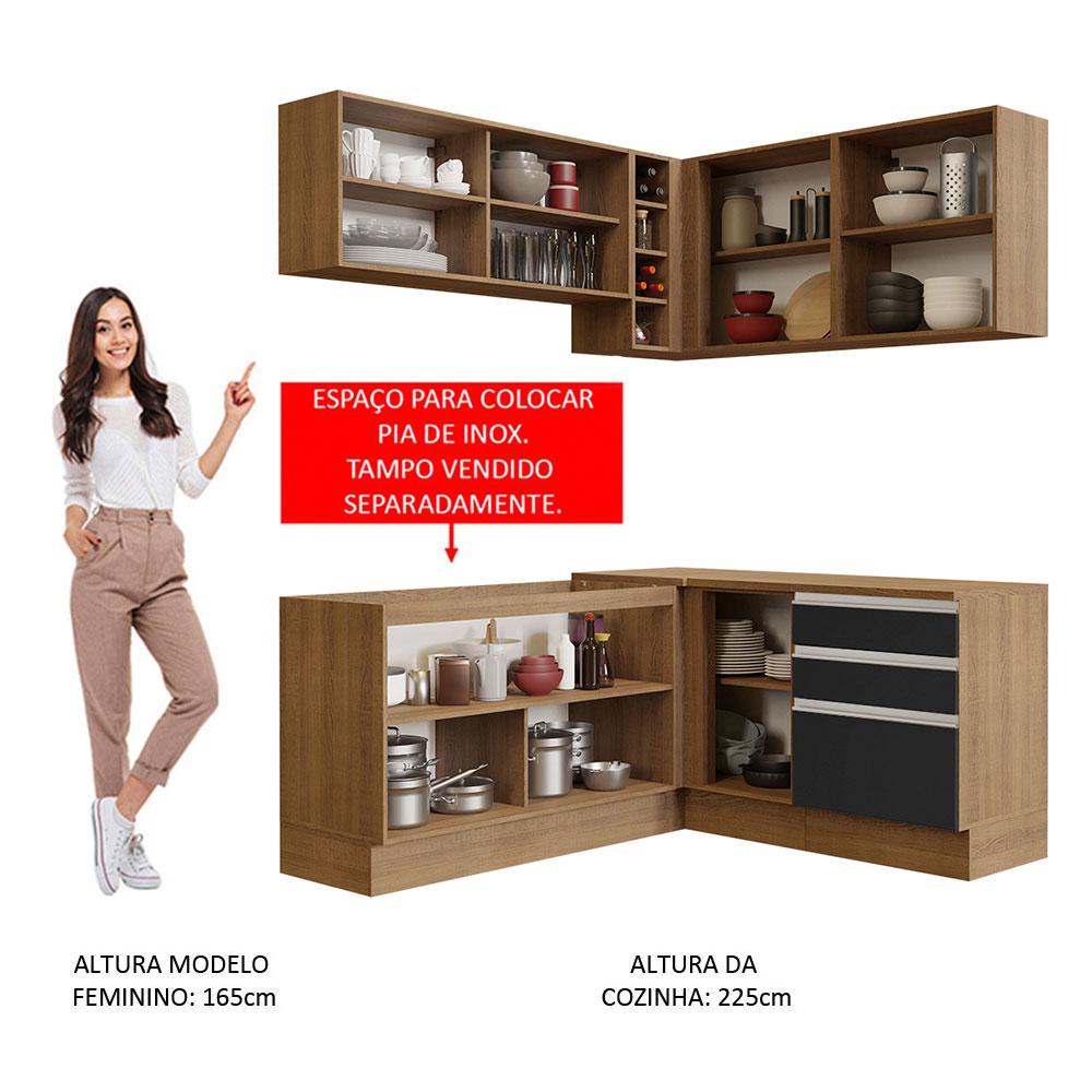 Cozinha Completa de Canto Madesa Glamy 329002 com Armário e Balcão (Sem Tampo e Pia) - Rustic/Preto