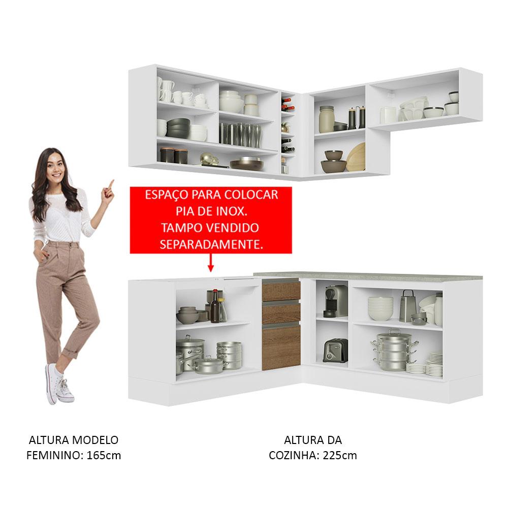 Cozinha Completa de Canto Madesa Glamy 349002 com Armário e Balcão (Sem Tampo e Pia) - Branco/Rustic