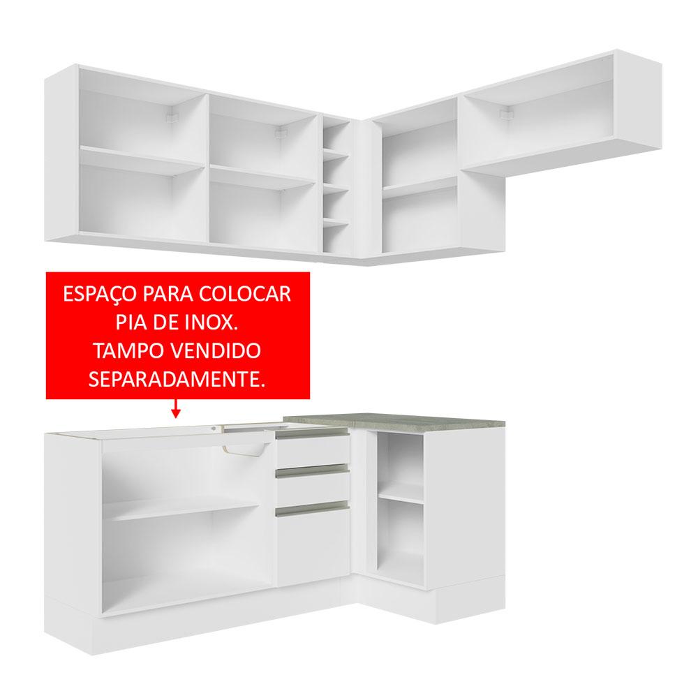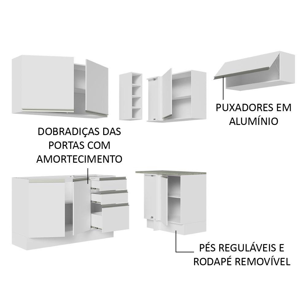 Armário de Cozinha Completa de Canto 349cm Branco Glamy Madesa 07