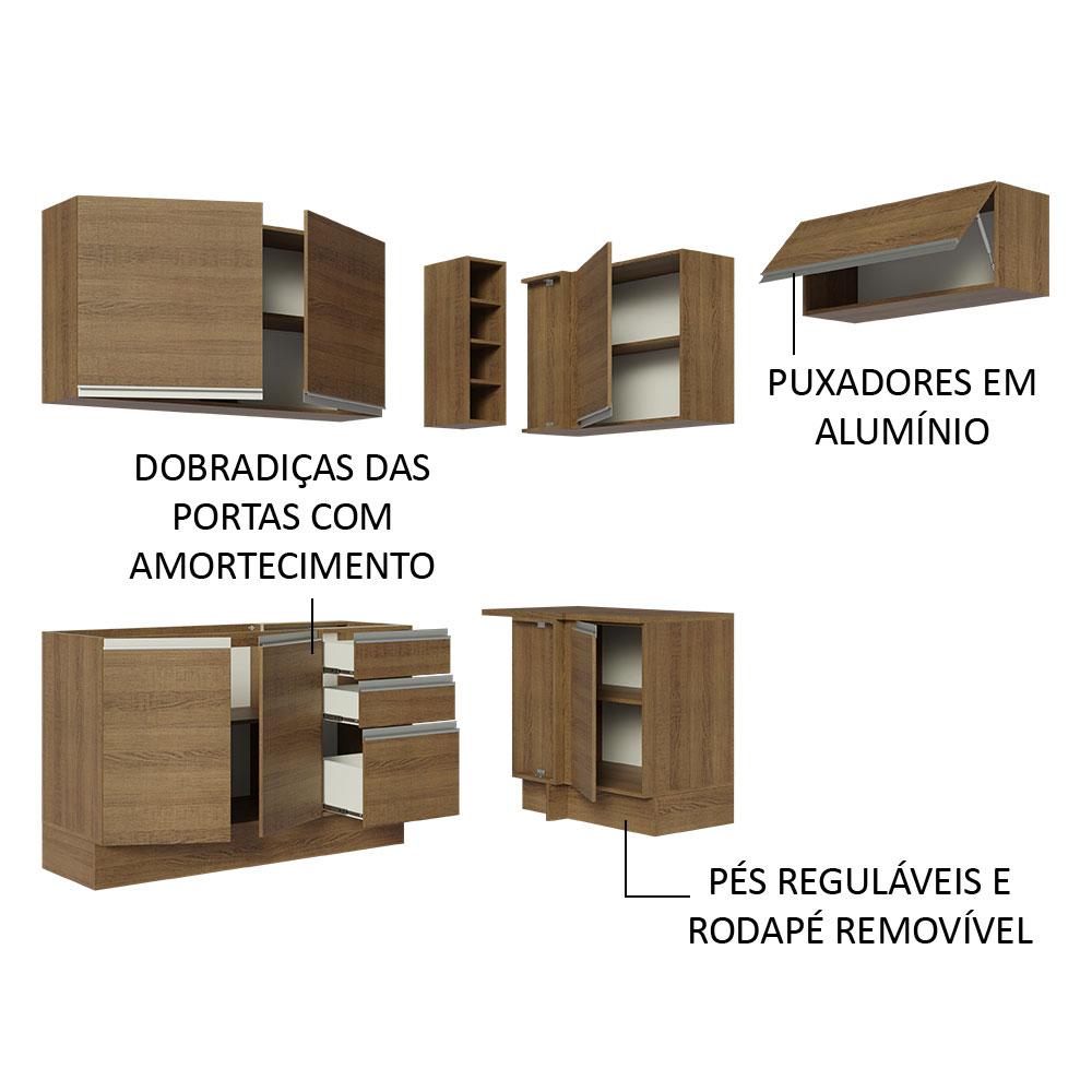 Armário de Cozinha Completa de Canto 349cm Rustic Glamy Madesa 07