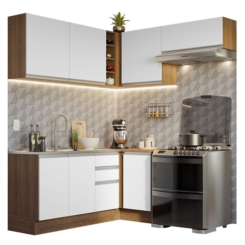 Armário de Cozinha Completa de Canto 349cm Rustic/Branco Glamy Madesa 07