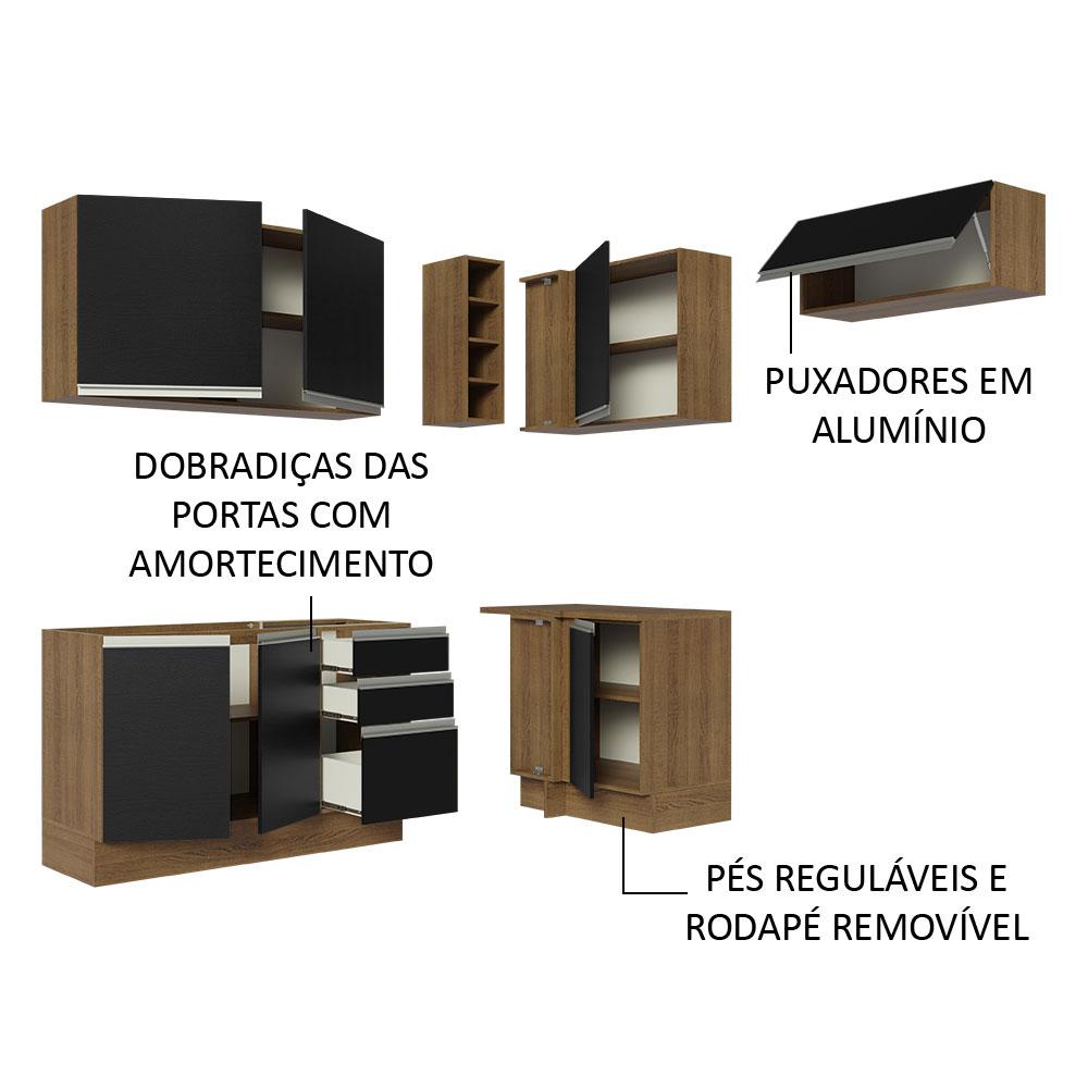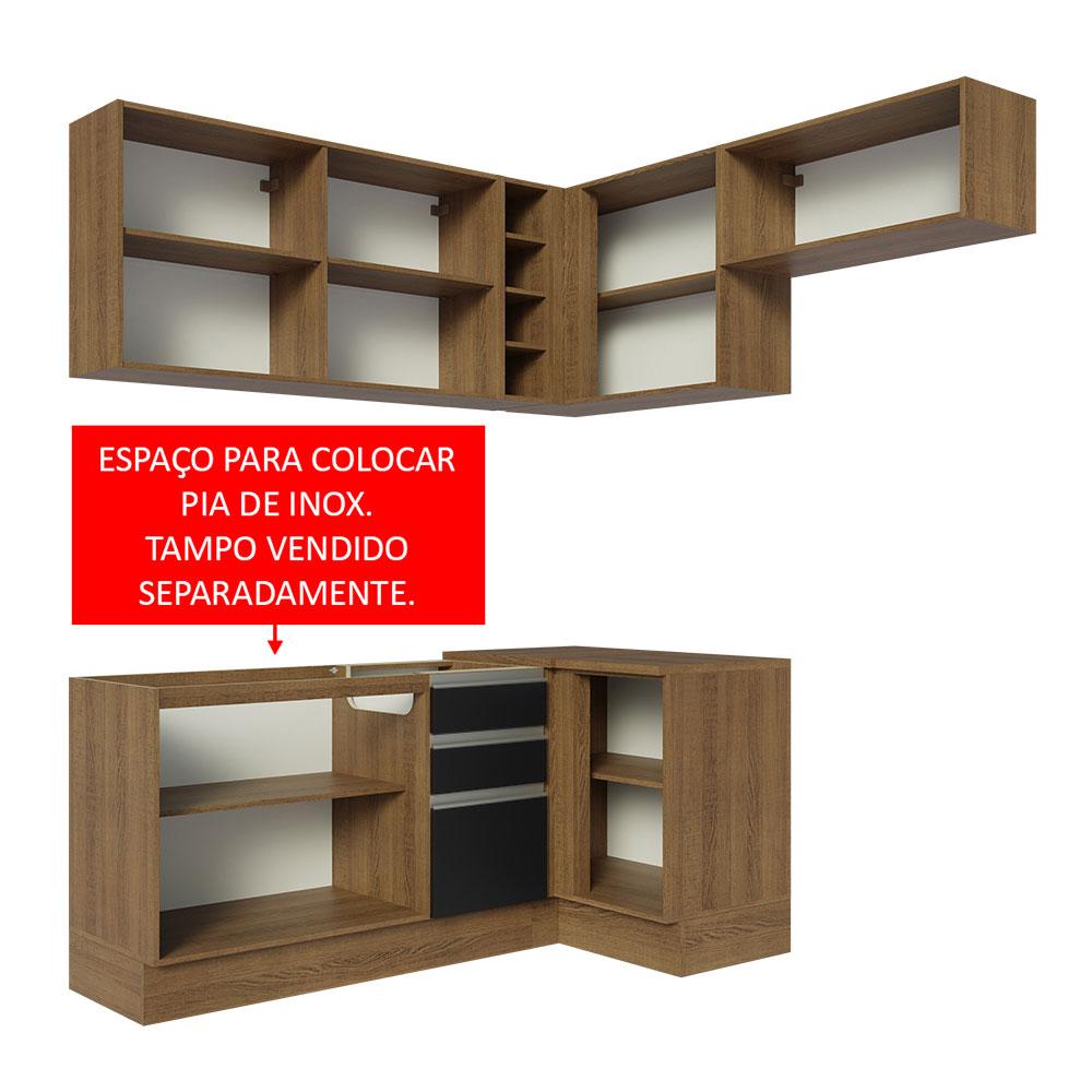 Armário de Cozinha Completa de Canto 349cm Rustic/Preto Glamy Madesa 07