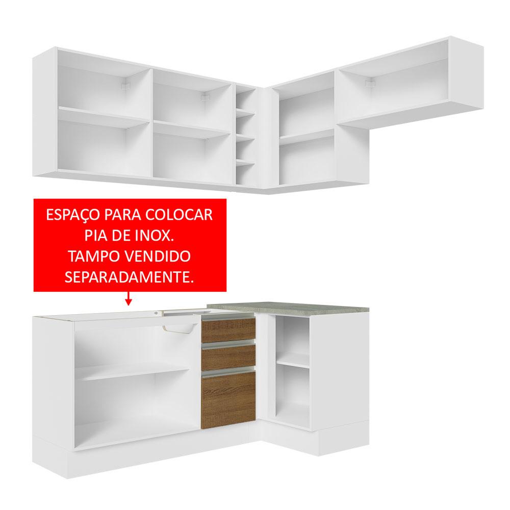 Armário de Cozinha Completa de Canto 349cm Branco/Rustic Glamy Madesa 07