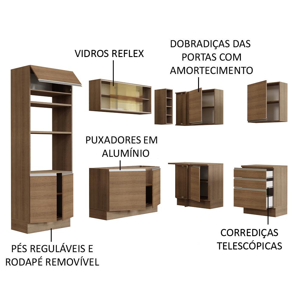 Cozinha Completa de Canto Madesa Glamy 399002 com Armário e Balcão (Sem Tampo e Pia) - Rustic