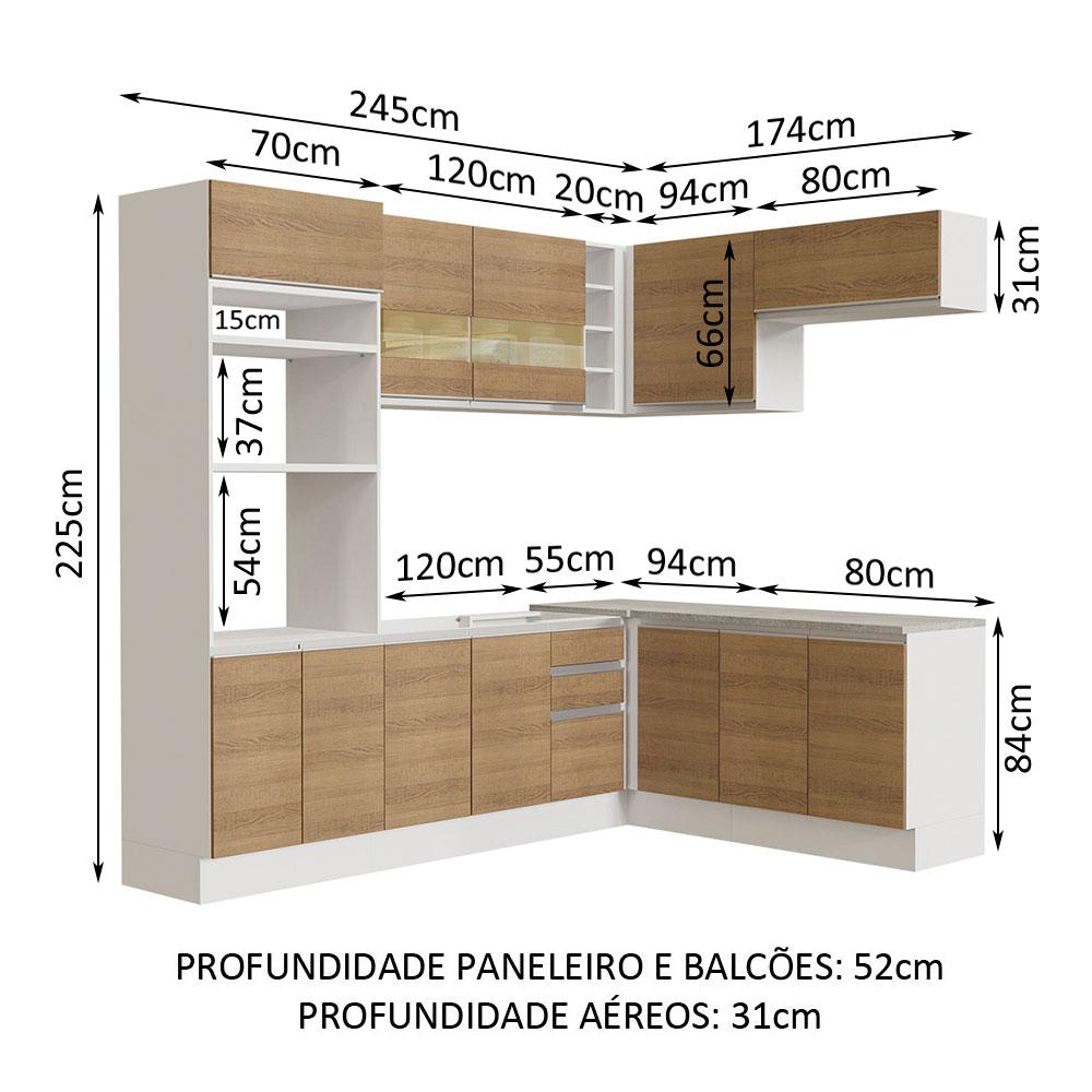 Cozinha Completa de Canto Madesa Glamy 419001 com Armário e Balcão (Sem Tampo e Pia) - Branco/Rustic