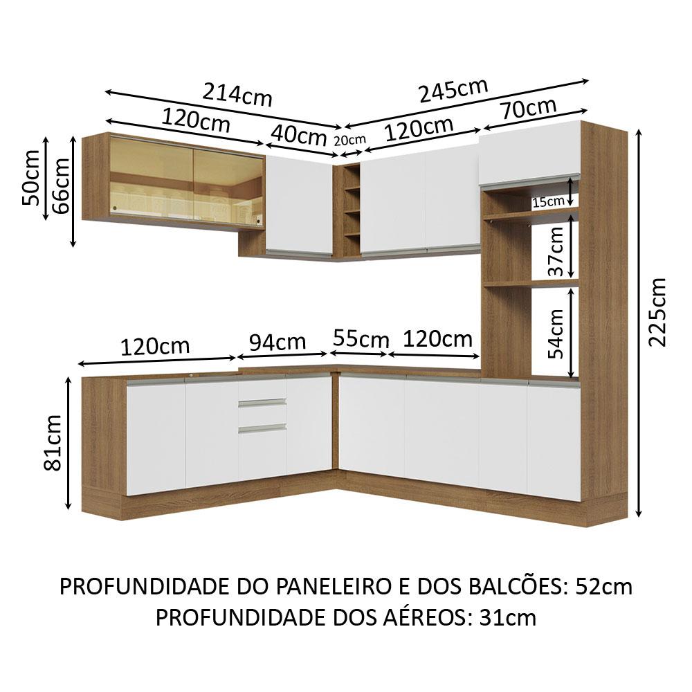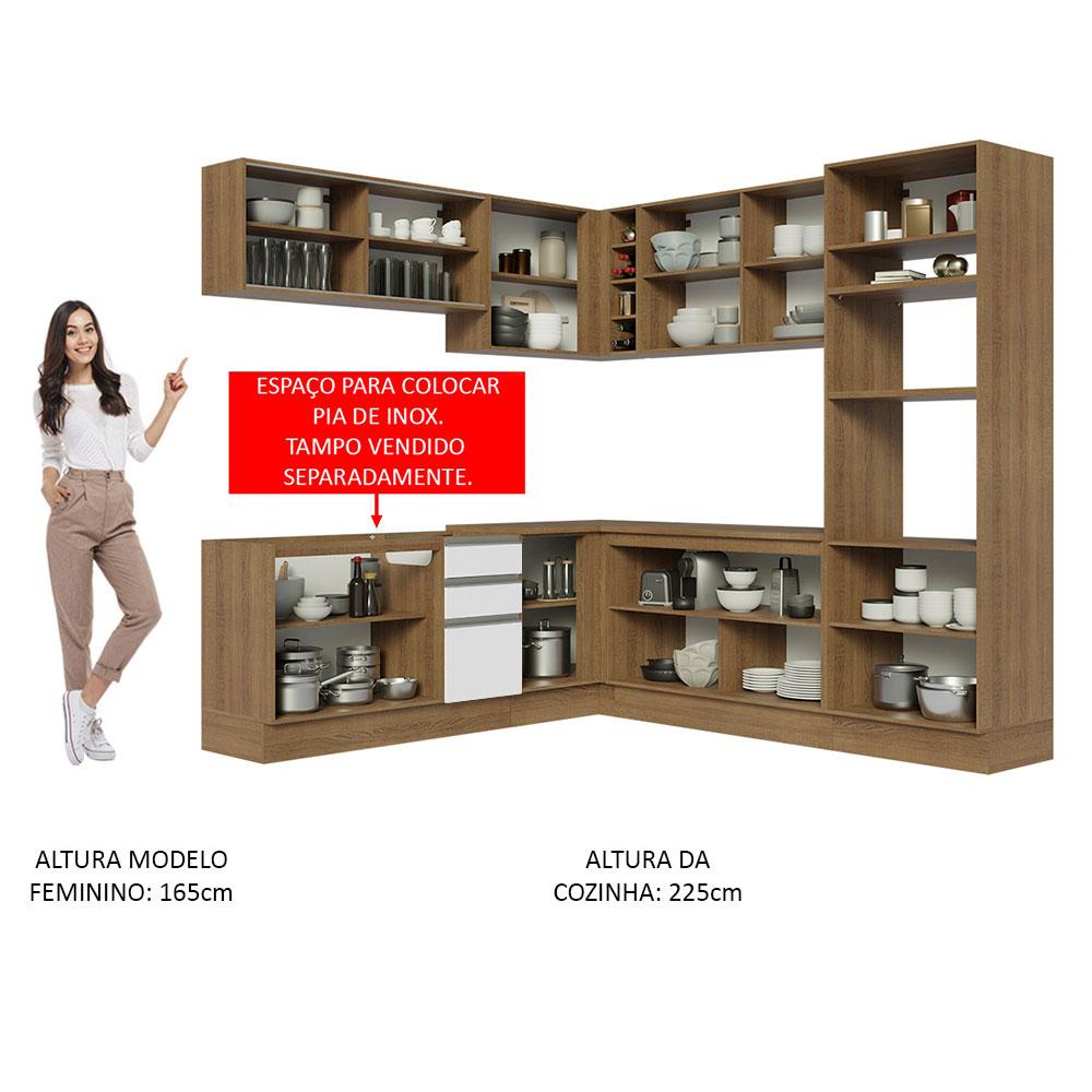 Cozinha Completa de Canto Madesa Glamy 459001 com Armário e Balcão (Sem Tampo e Pia) - Rustic/Branco