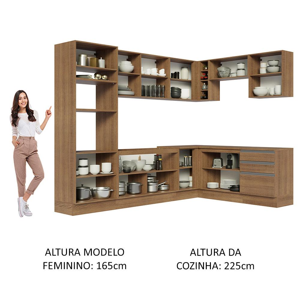 Cozinha Completa de Canto Madesa Glamy 479001 com Armário e Balcão (Sem Tampo e Pia) - Rustic