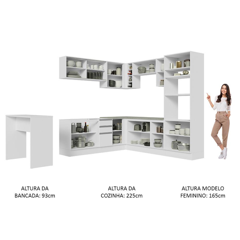 Cozinha Completa de Canto Madesa Glamy 504001 com Armário e Bancada (Sem Tampo e Pia) - Branco